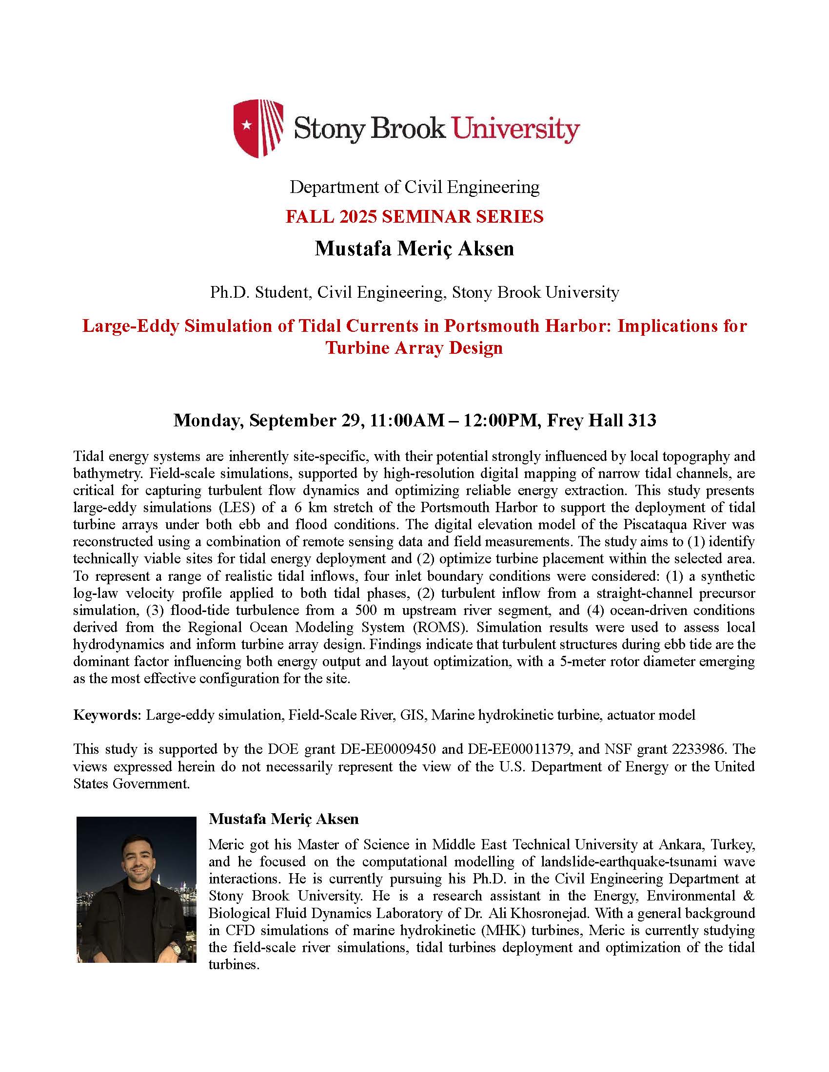 "Experimental and Numerical Investigation of Debris Entrainment, Transport and Impact under Dam-break-induced Rapid Flow on a Varying Bathymetry", Mohammadreza Aliyari, PhD student
