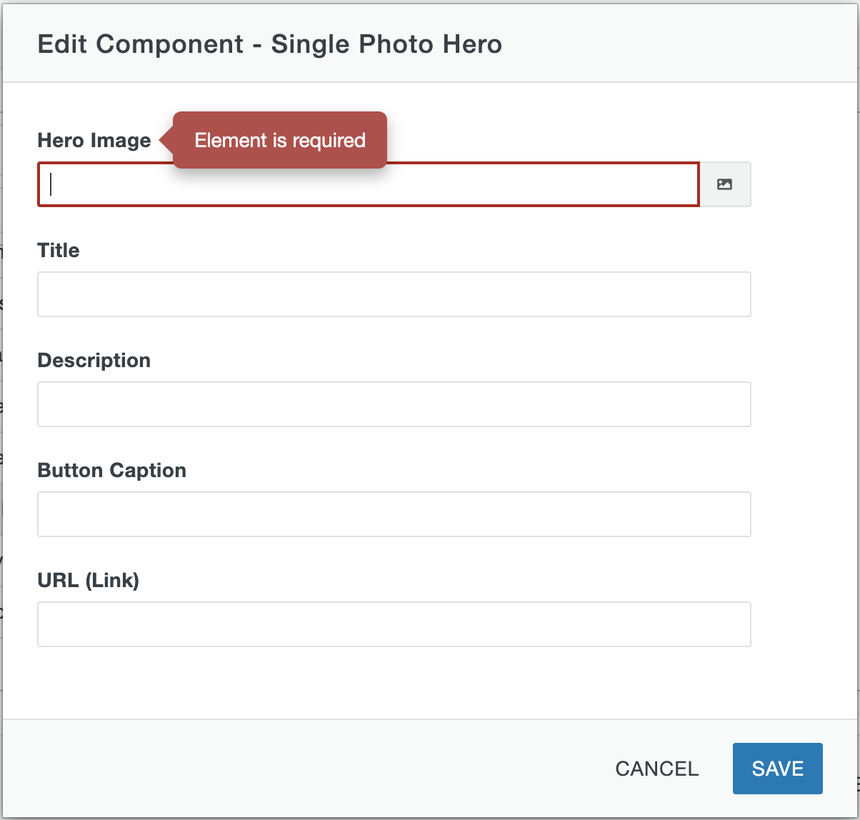 The Single Photo Hero Image component allows you to bypass the use of an image gallery asset if you only plan on using a single image at a time in your Hero space.