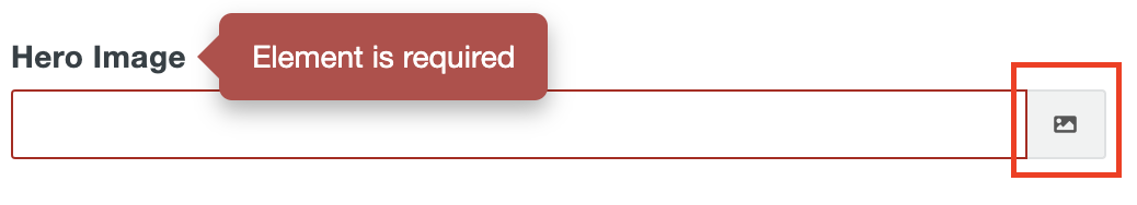 3) Choose the desired image as your page's hero by clicking the image selection button. Note that hero images should be saved at 1960 pixels wide by 700 pixels tall.