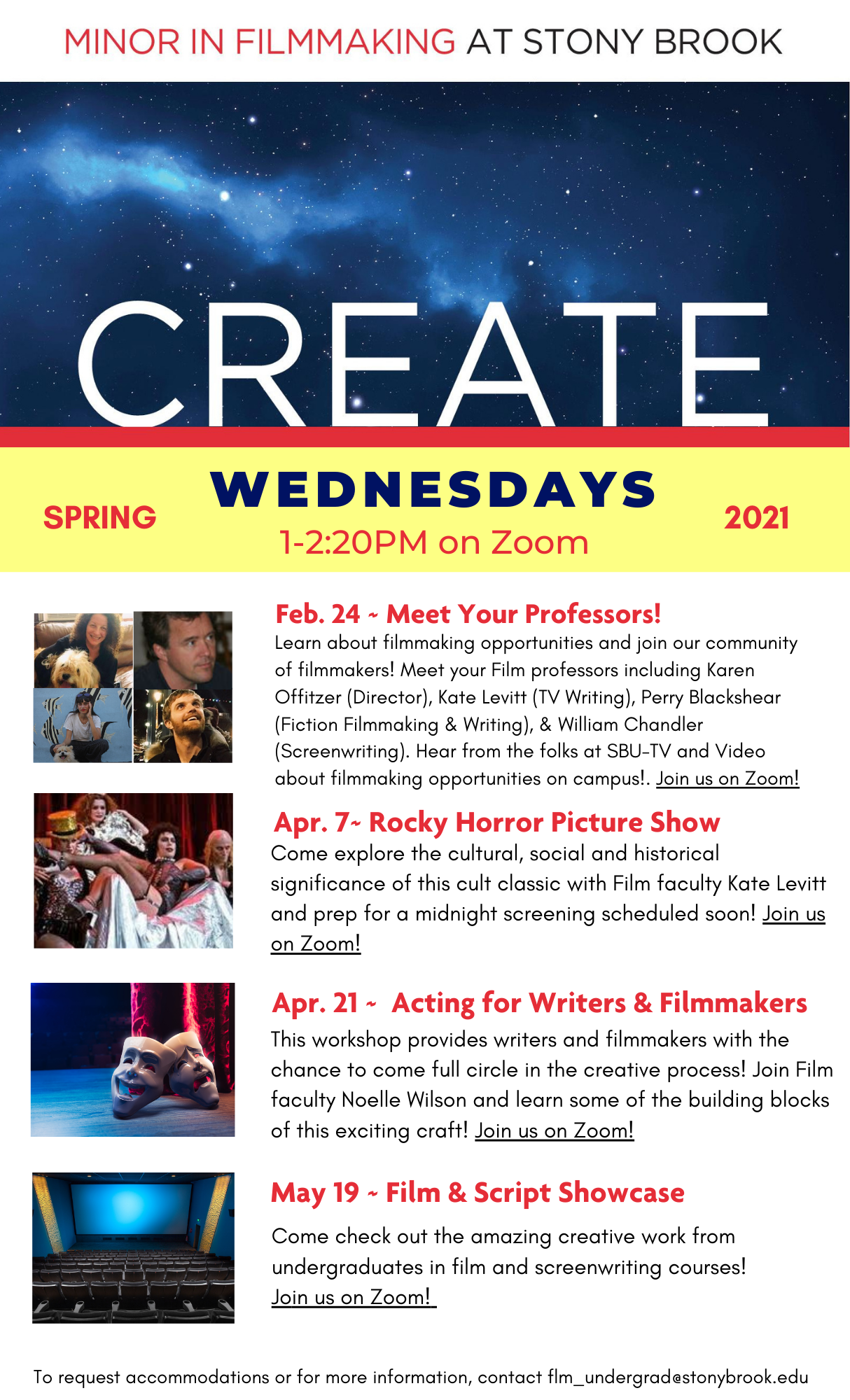 Come check out the amazing creative work from undergraduates in film and screenwriting
