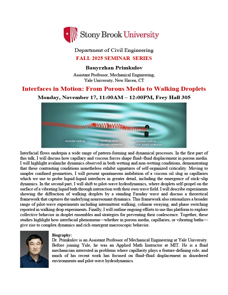 Interfaces in Motion: From Porous Media to Walking Droplets, Bauyrzhan Primkulov, PhD