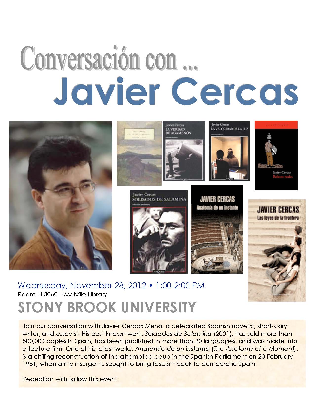 Dec 2, 1 to 2 pm. Melville Library N3060 (Hispanic Lang and Lit seminar room)