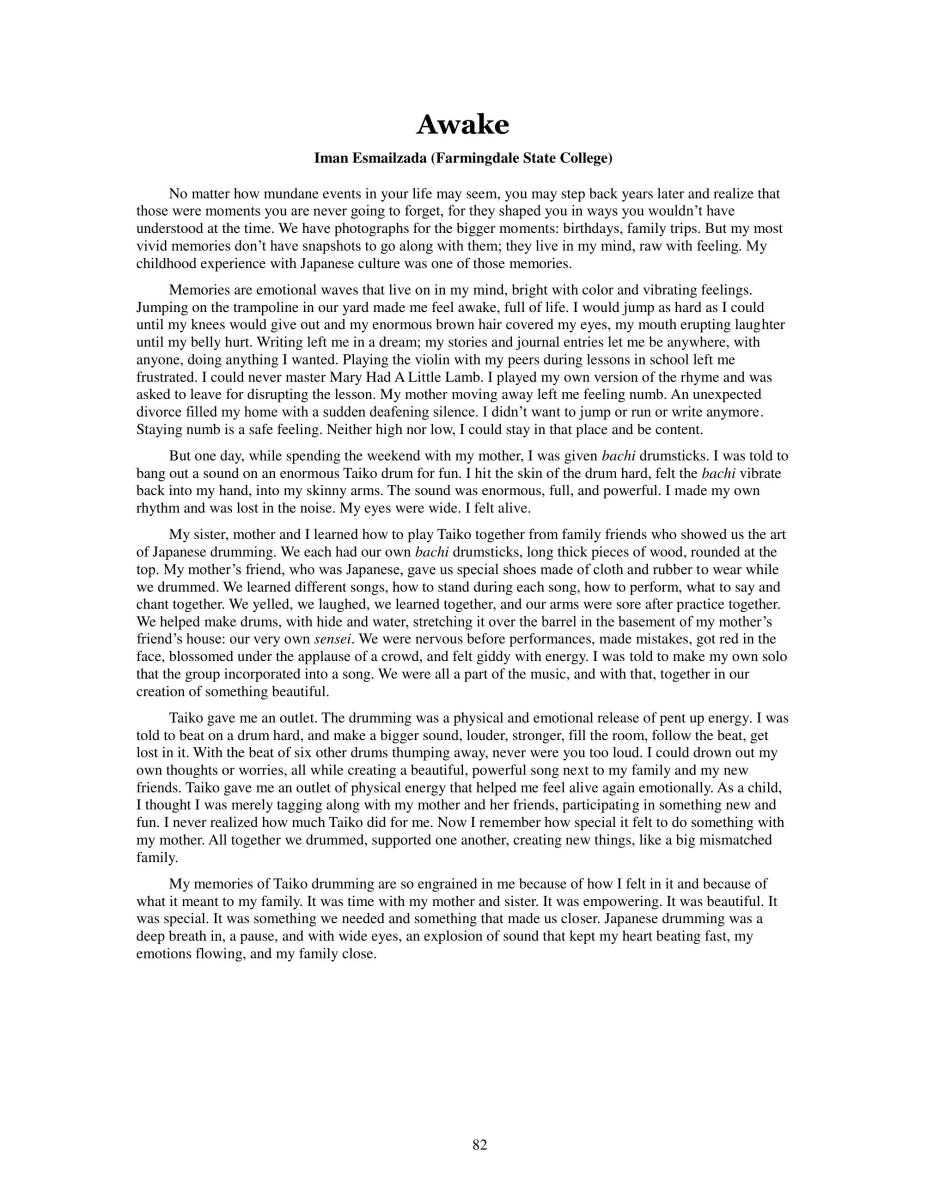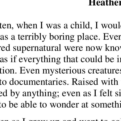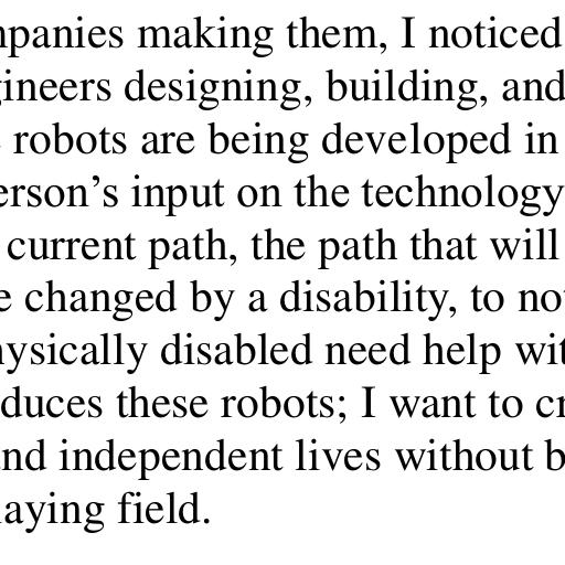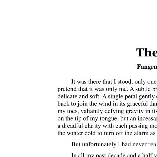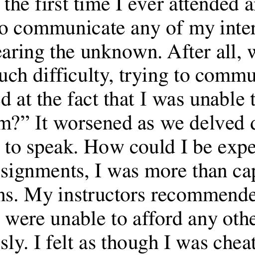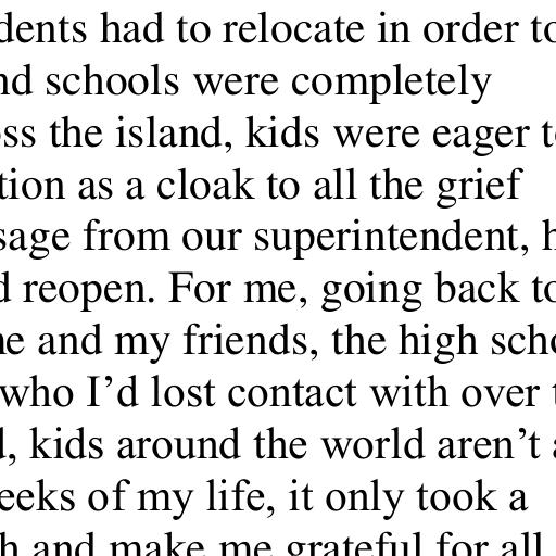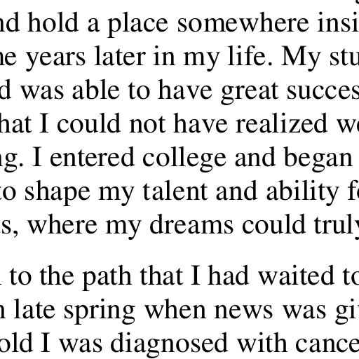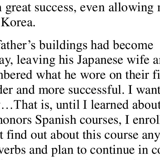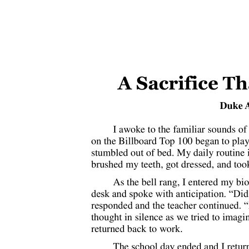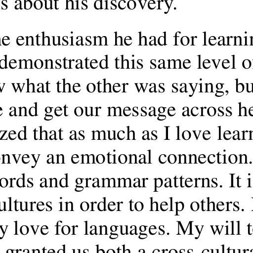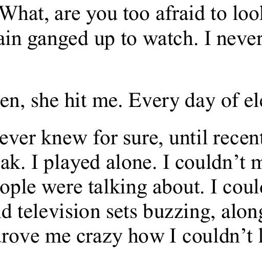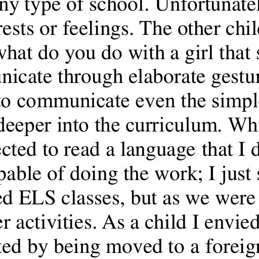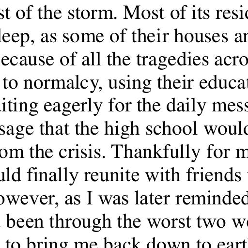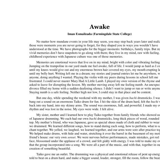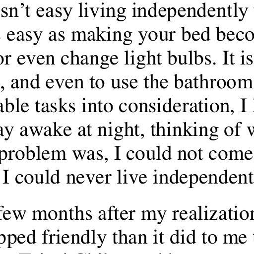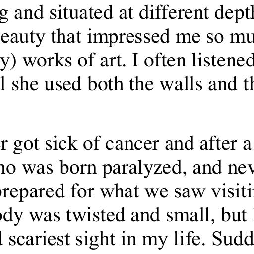 “A Remedy for Loneliness”Tia Culbreath (The Young Women’s Leadership School of Brooklyn)At a young age, I lost both of my parents. Of course, I was too young to fully understand what had happened to them, and why they stopped coming home after those fateful days. But a tiny, itty-bitty pit of loneliness began to form in me. I began to distance myself, making it harder to grow socially as I grew older. I didn't realize I was forming a barrier around myself, keeping people away when I needed them the most. That pit only grew more and more as I deserted my social needs and refused to socialize with other children. I lacked the tools I needed to express myself, to convey my feelings to the people around me. I was desperate for socialization, but allowed fear to keep my tongue still. No one could really understand me. In fact, I couldn't really understand myself at all.