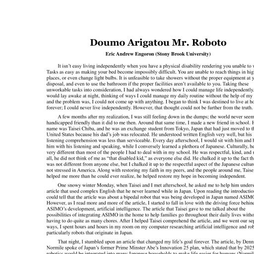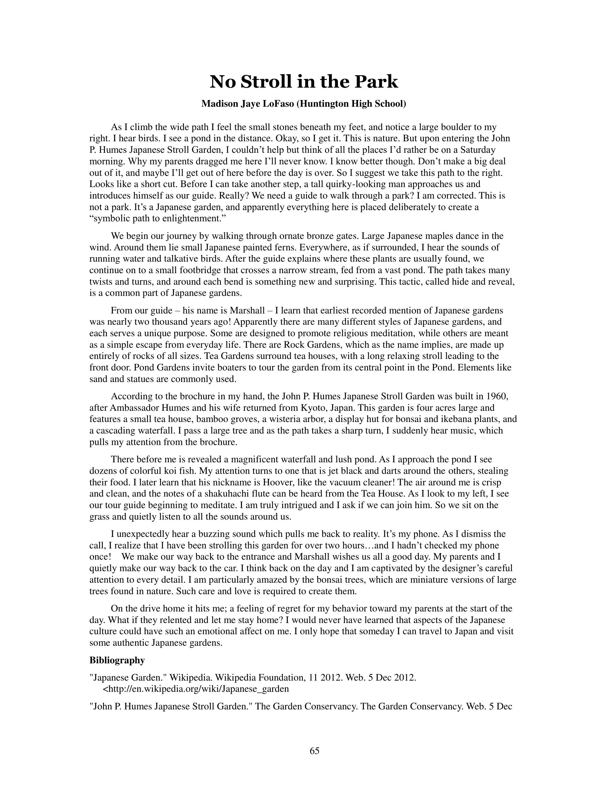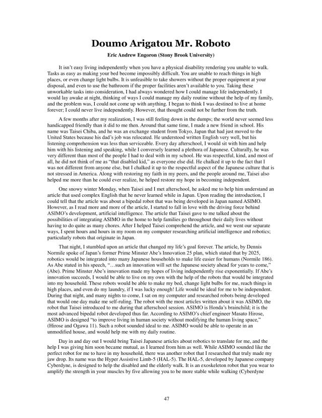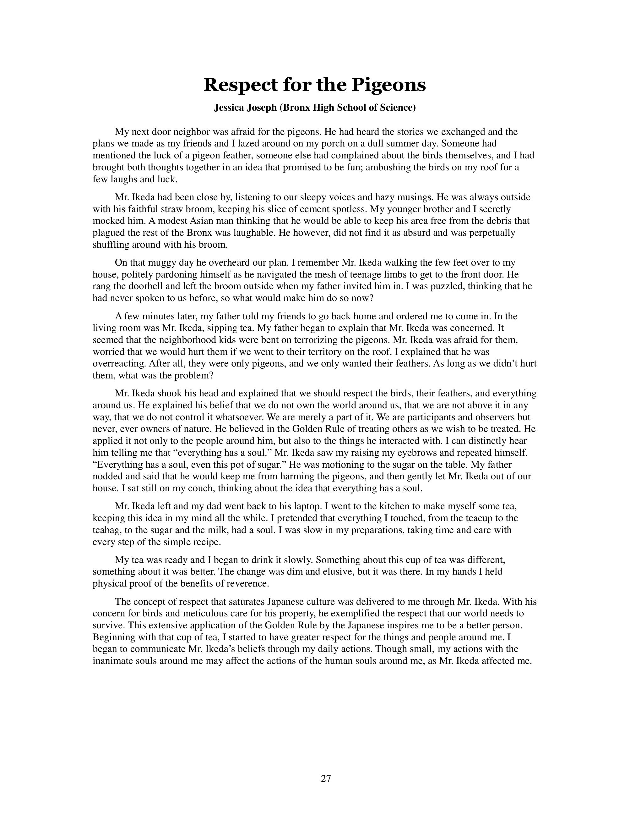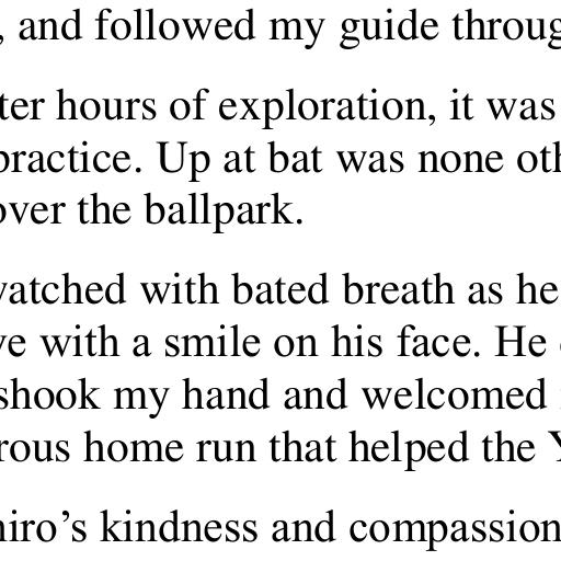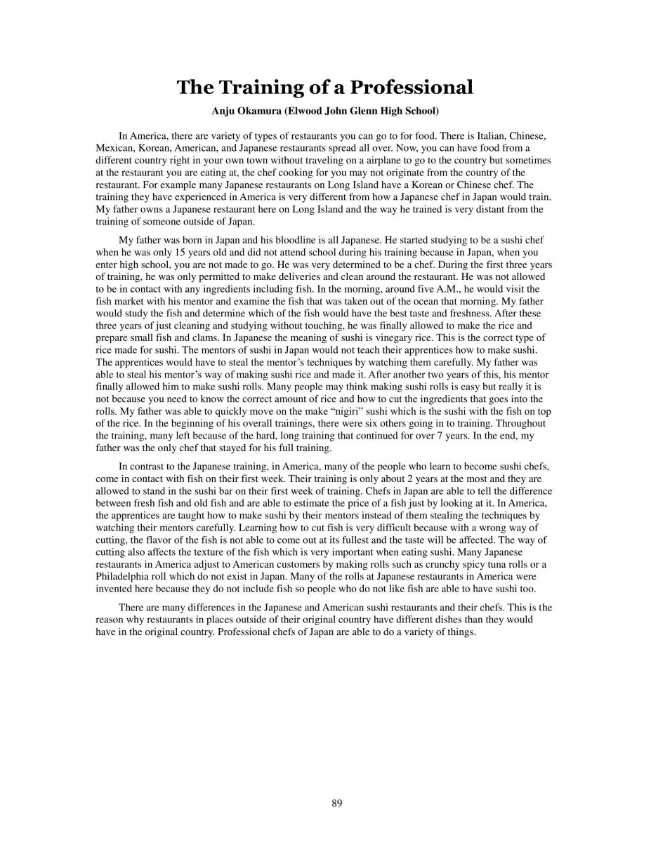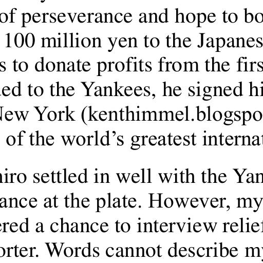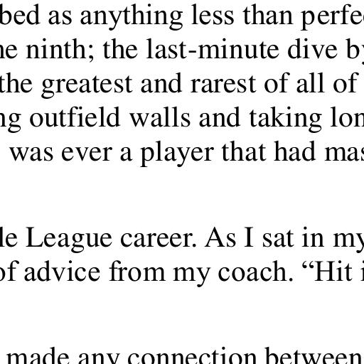 “Samurai in the Outfield”Colin Capece (Chaminade High School)My family is a baseball family. Baseball fascinates us. Baseball enthralls us. Baseball brings us together. Our family vacations are spent visiting ballparks and opening day is a cause for celebration. So it is no surprise that one of my family’s favorite summer pastimes is to tune in for the Little League World Series. Even though my three brothers and I are past our Little League baseball days, we still enjoy watching younger kids play in the annual tournament held in Williamsport, Pennsylvania. Year after year, we are mesmerized and our family conversation is dominated by the names and stories of the teams in that year’s competition.