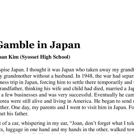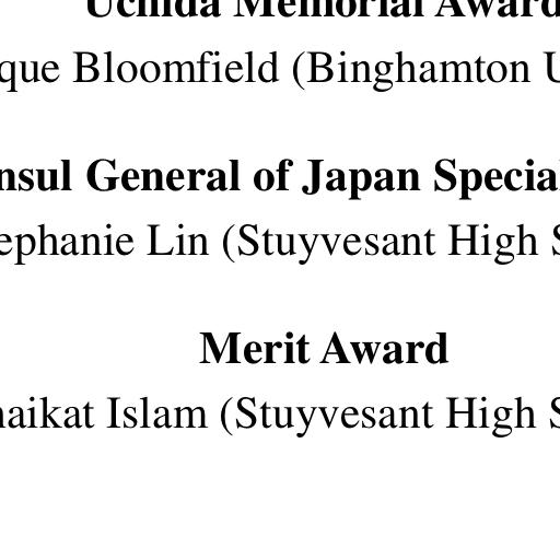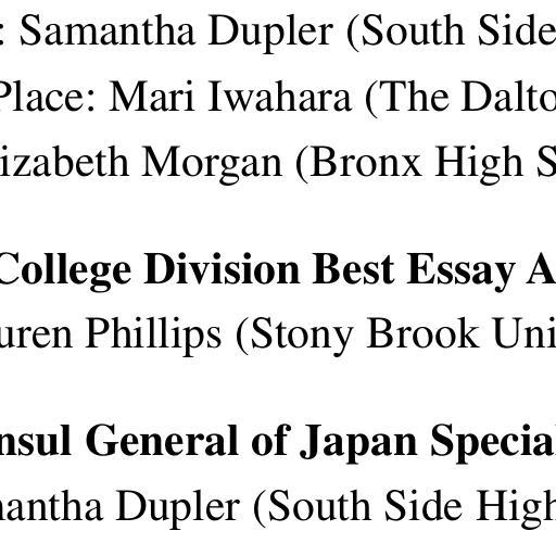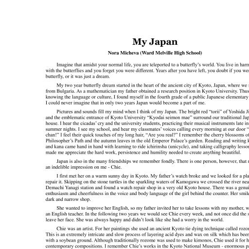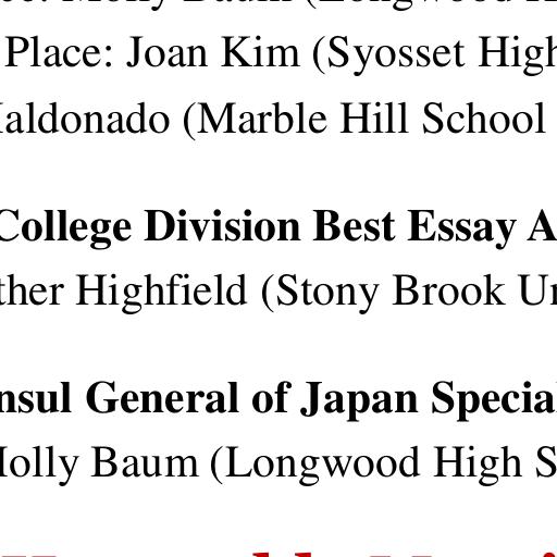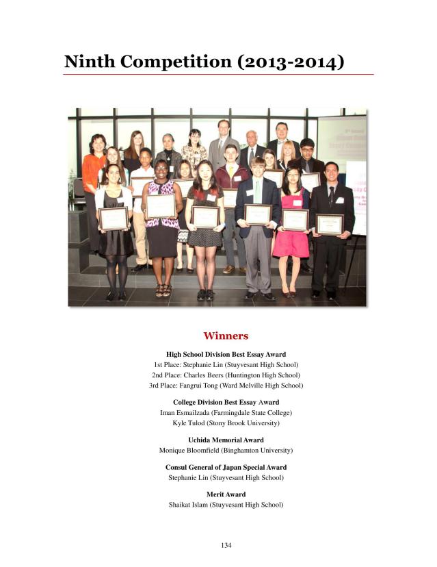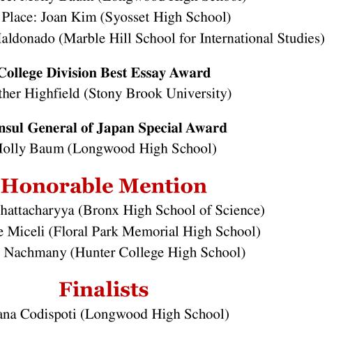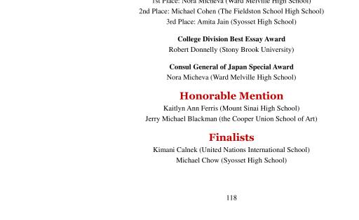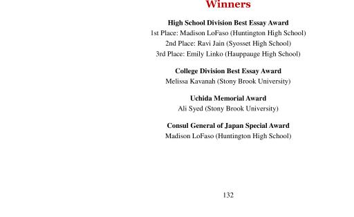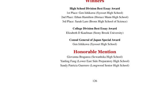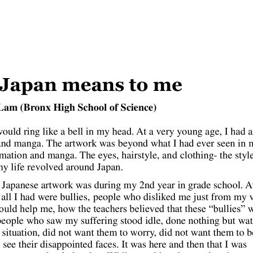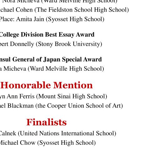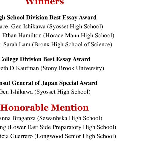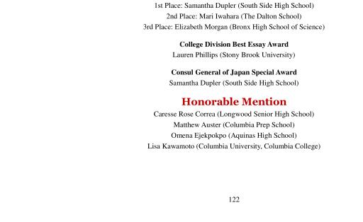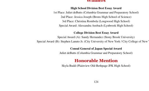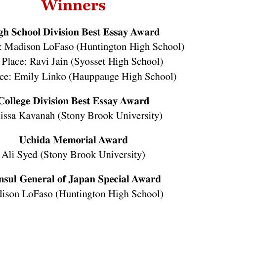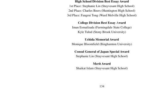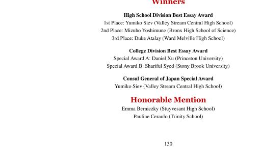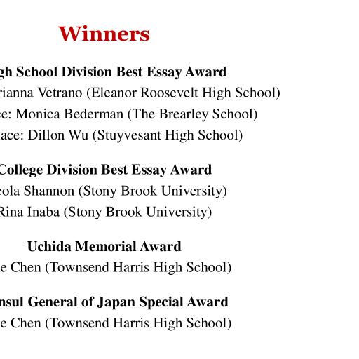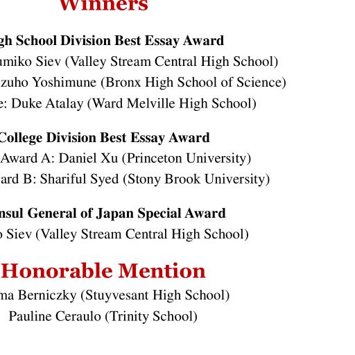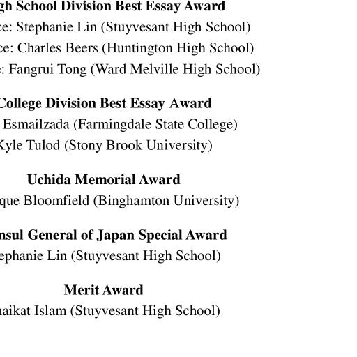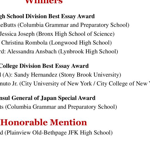 High School Division 1st Place Best Essay Award & Consul General of Japan Special Award