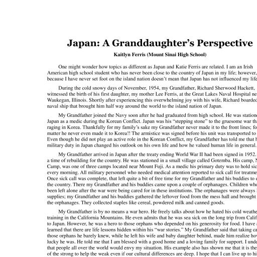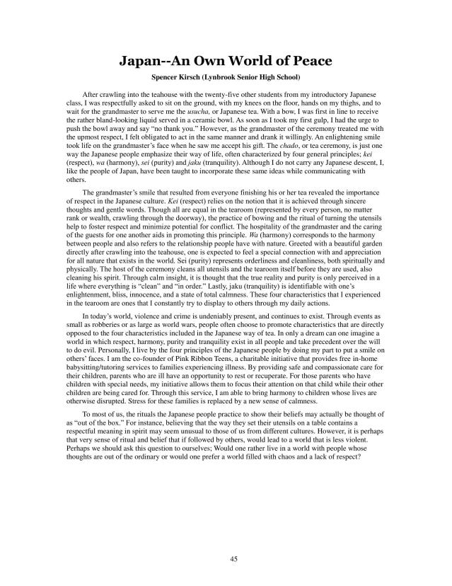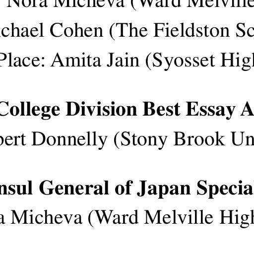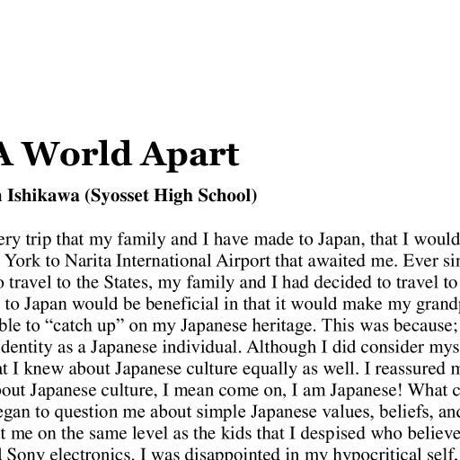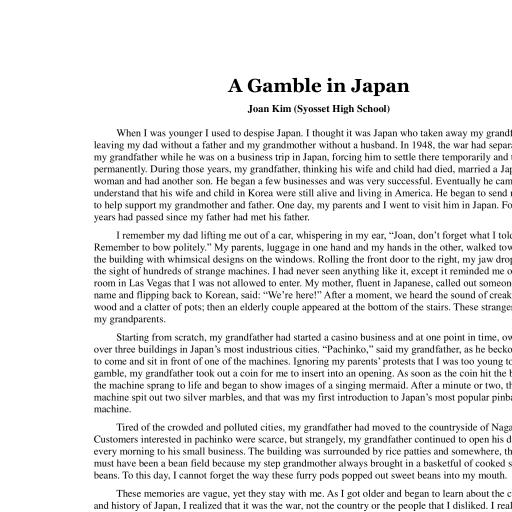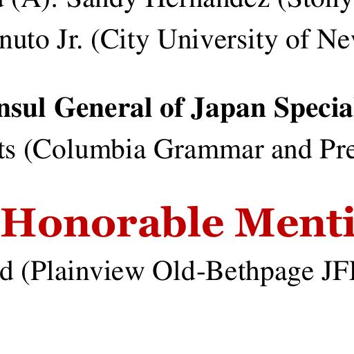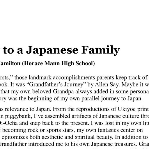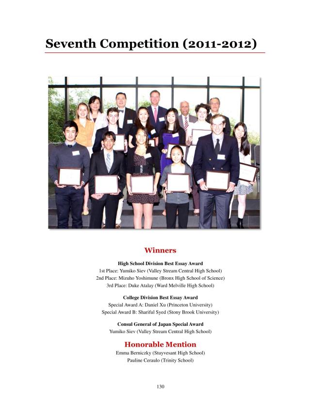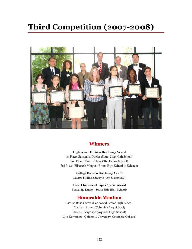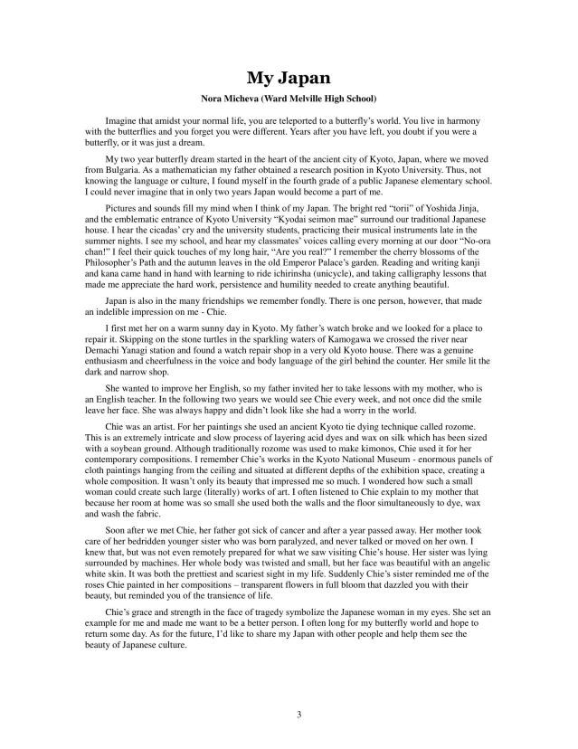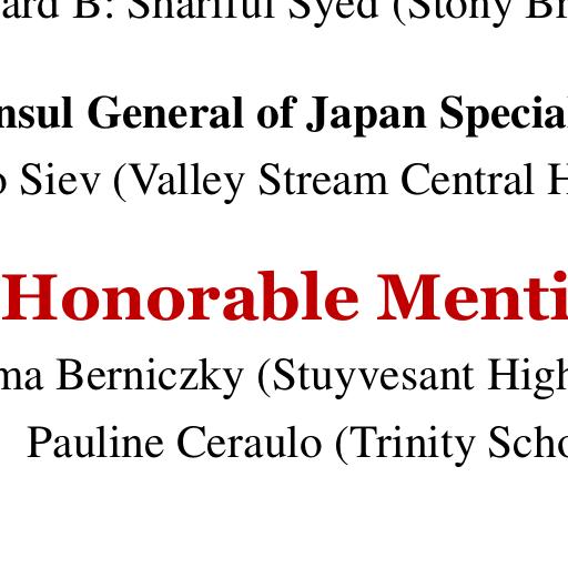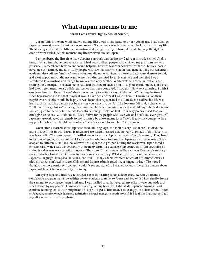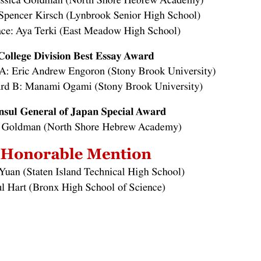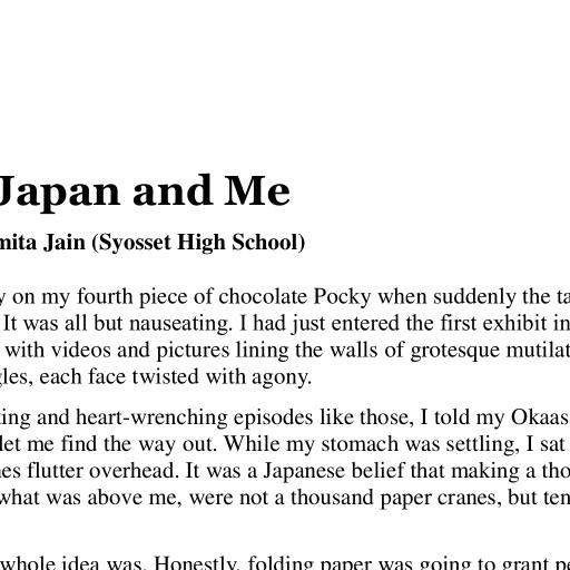 High School Division 1st Place Best Essay Award & Consul General of Japan Special Award