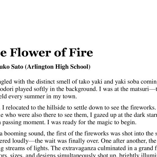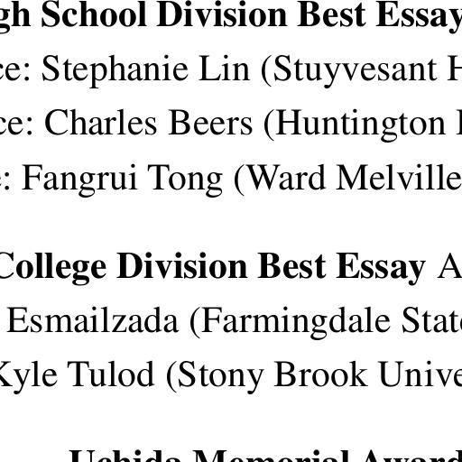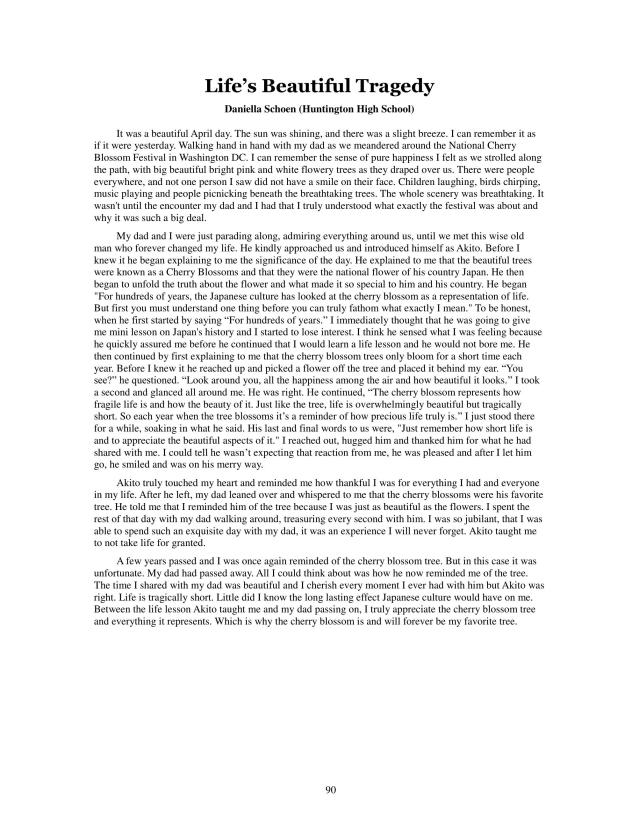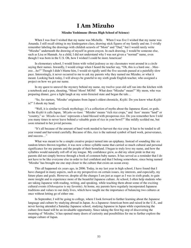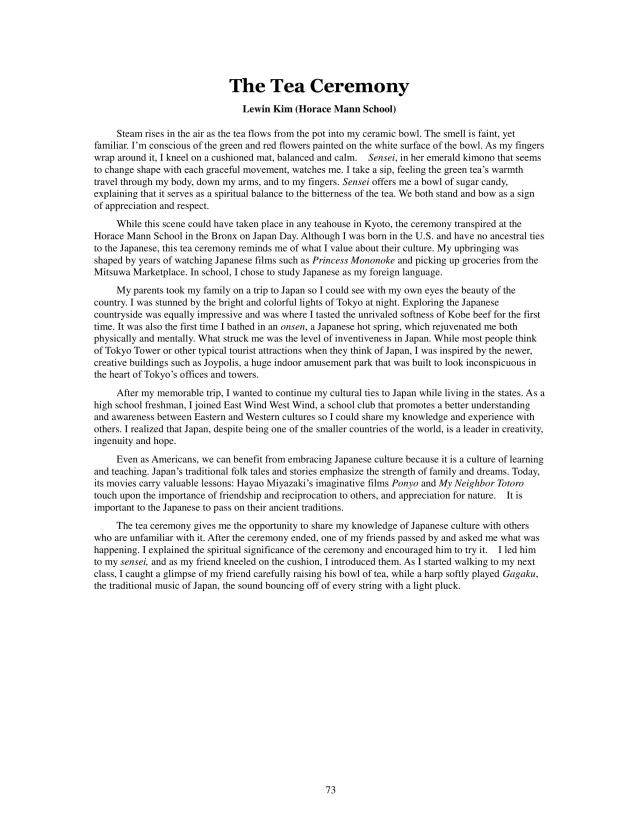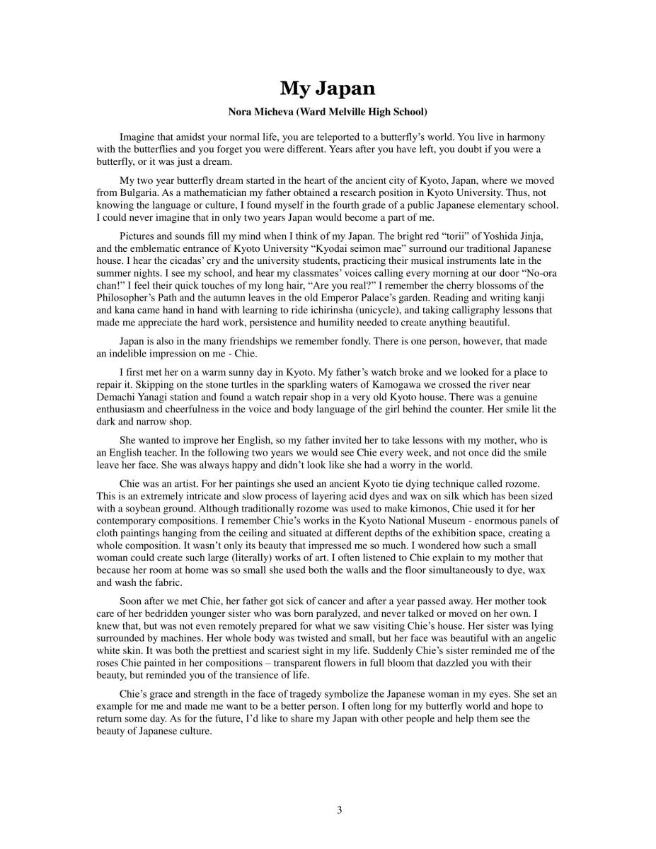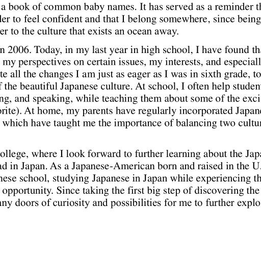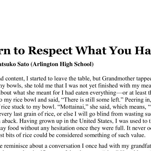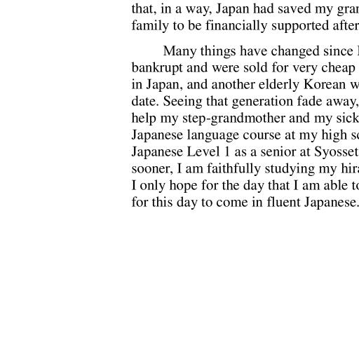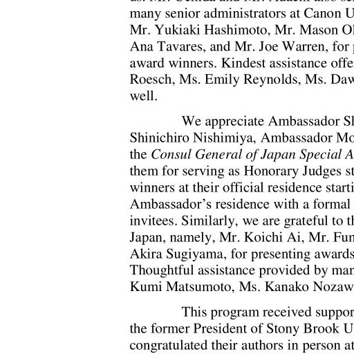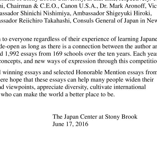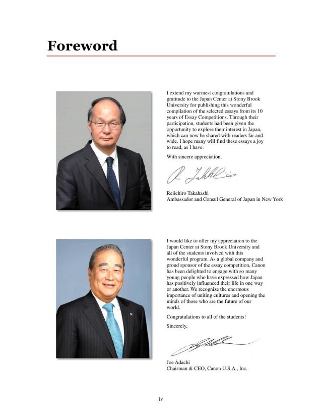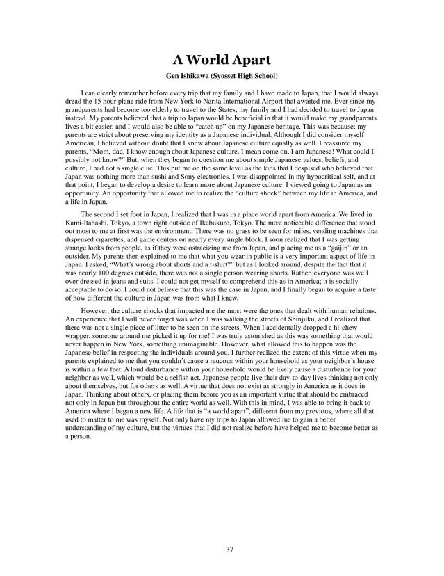 High School Division 1st Place Best Essay Award & Consul General of Japan Special Award
