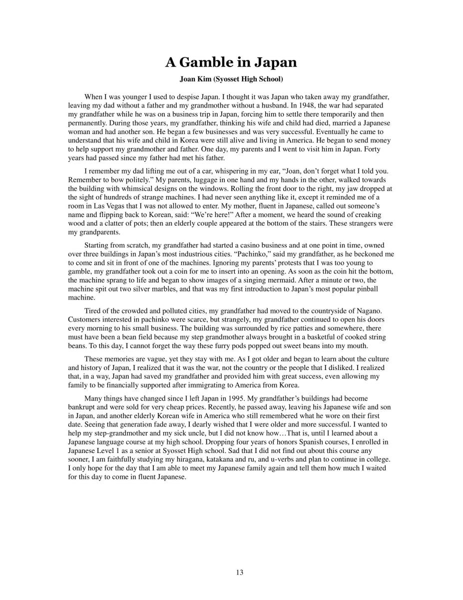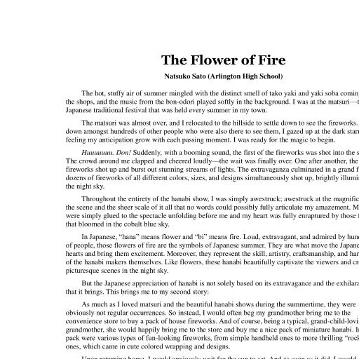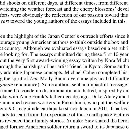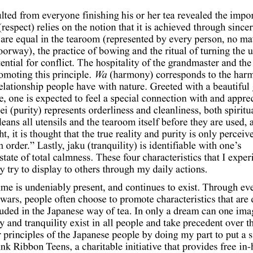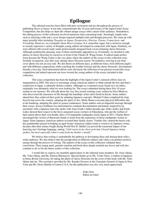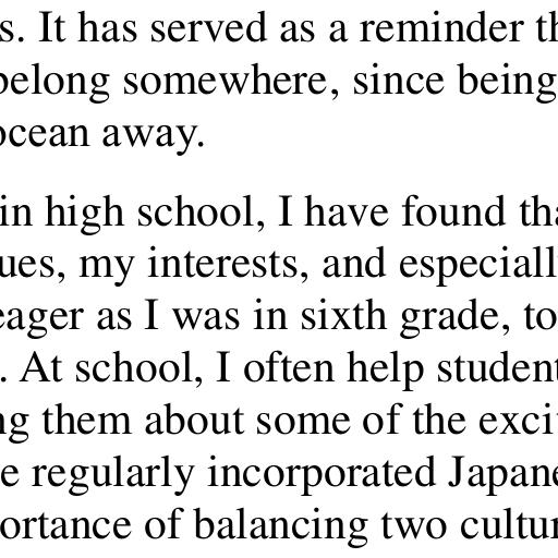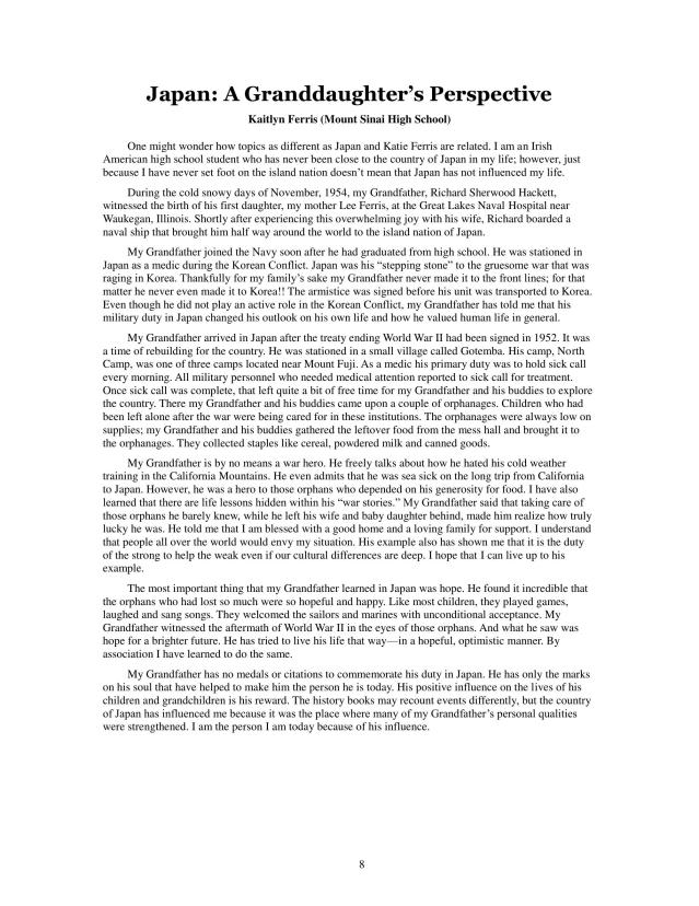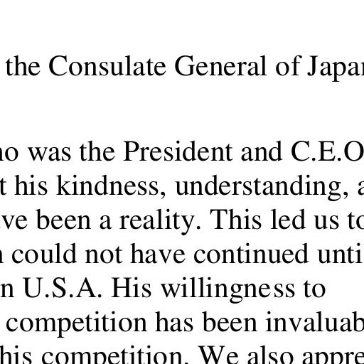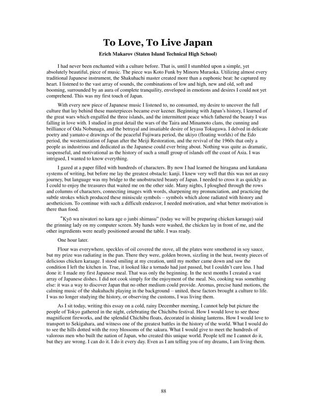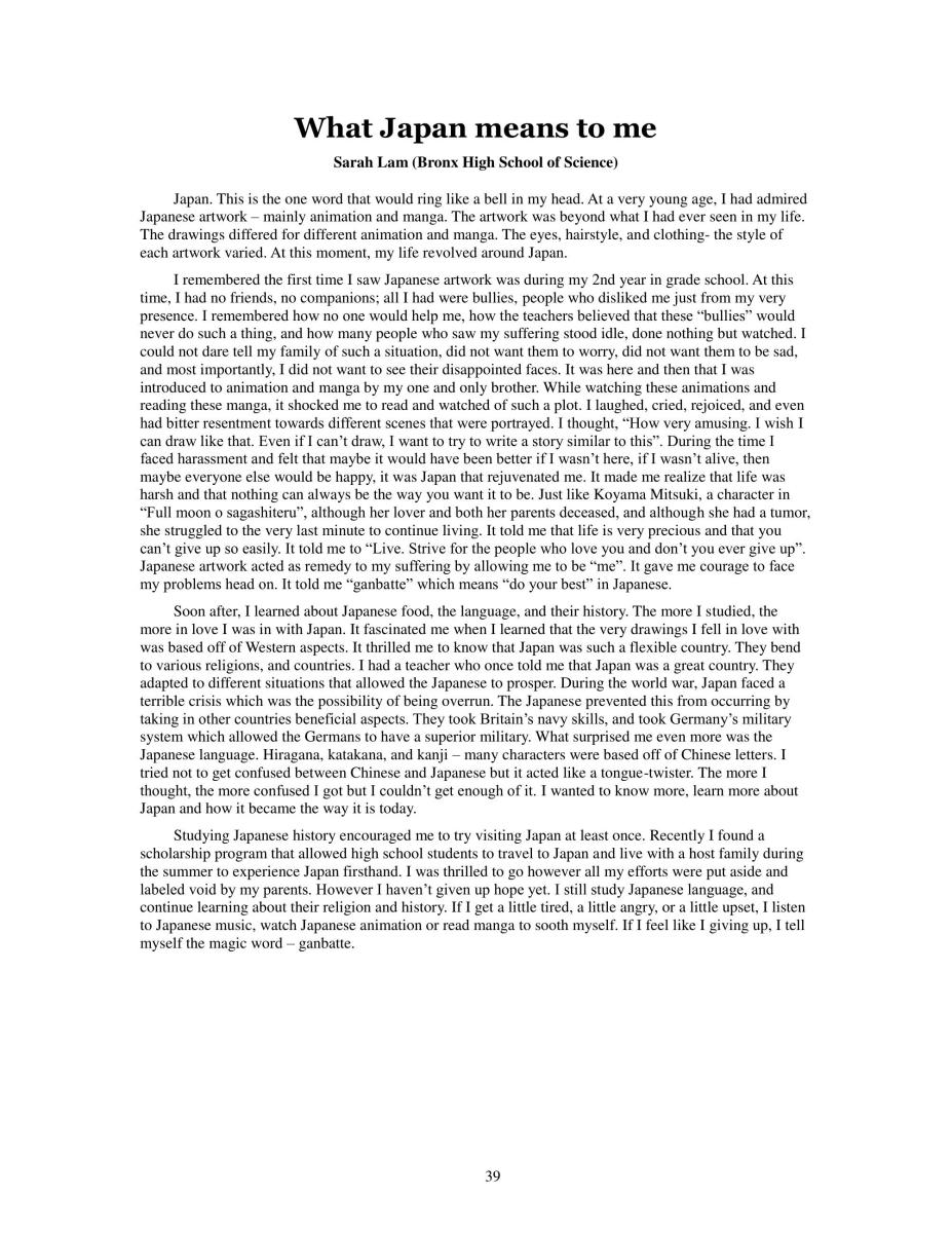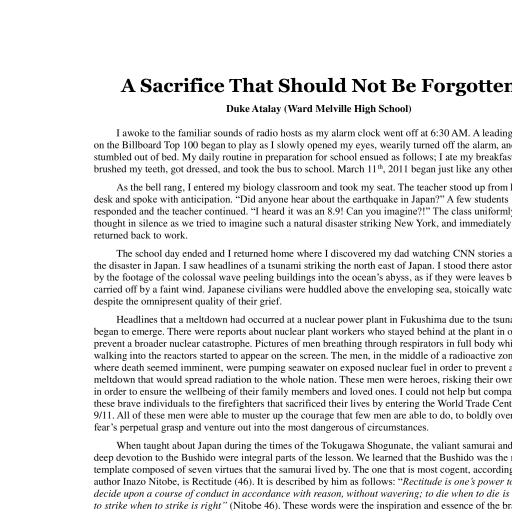 High School Division 1st Place Best Essay Award & Consul General of Japan Special Award