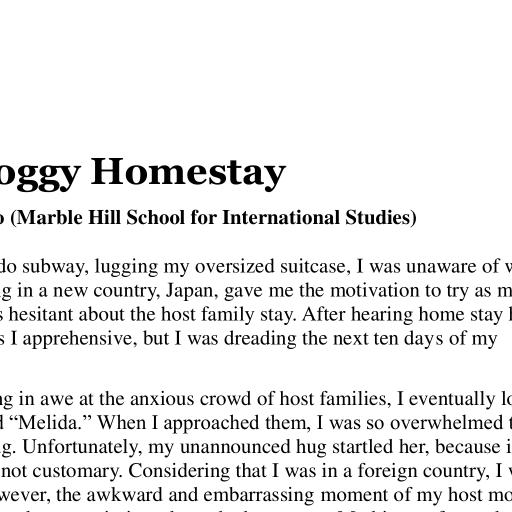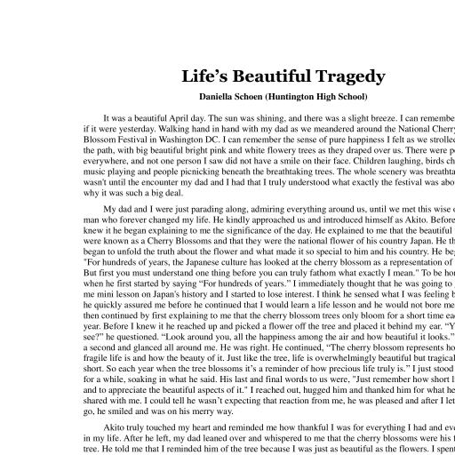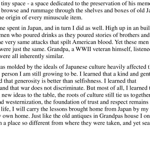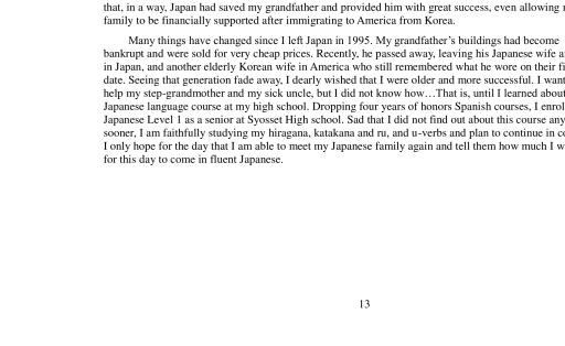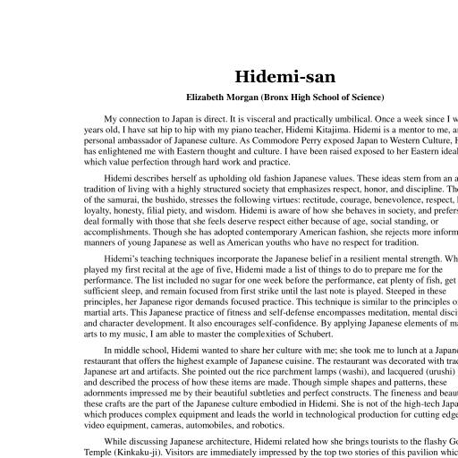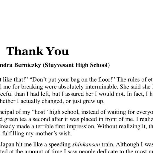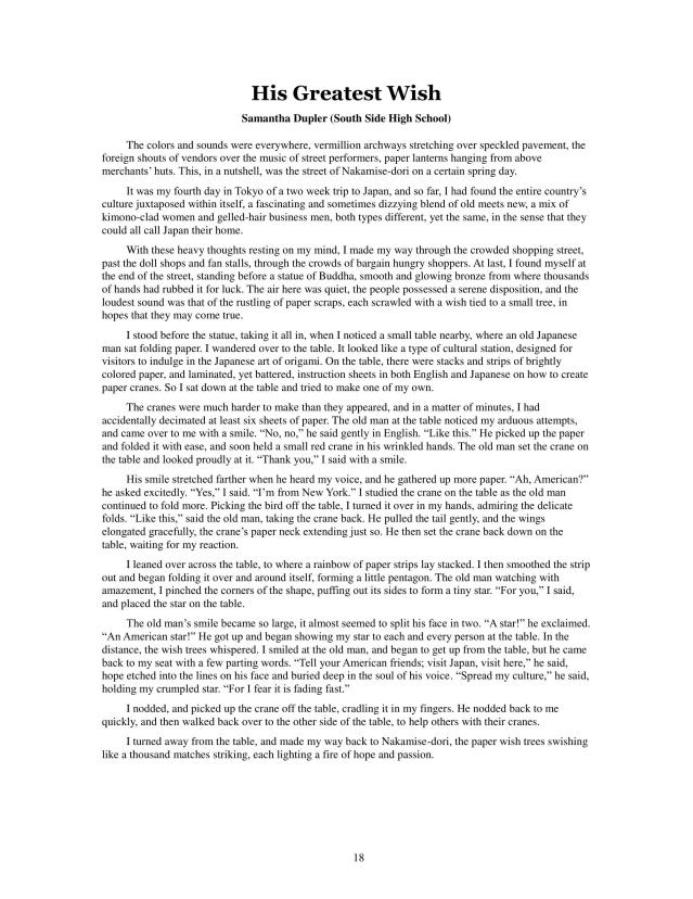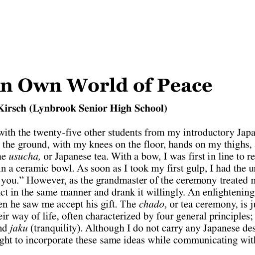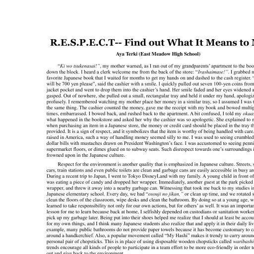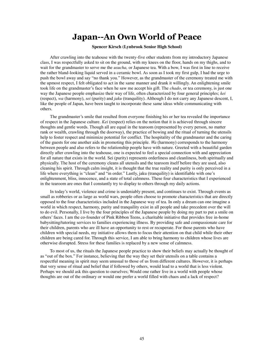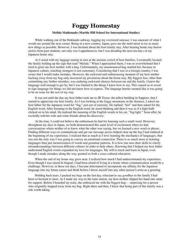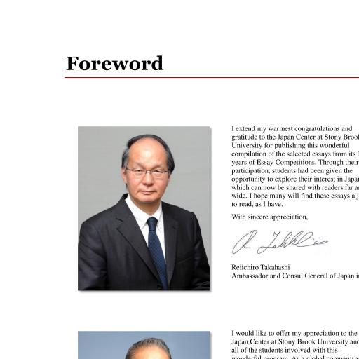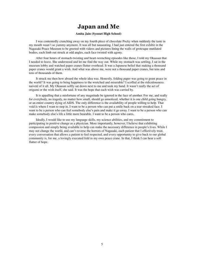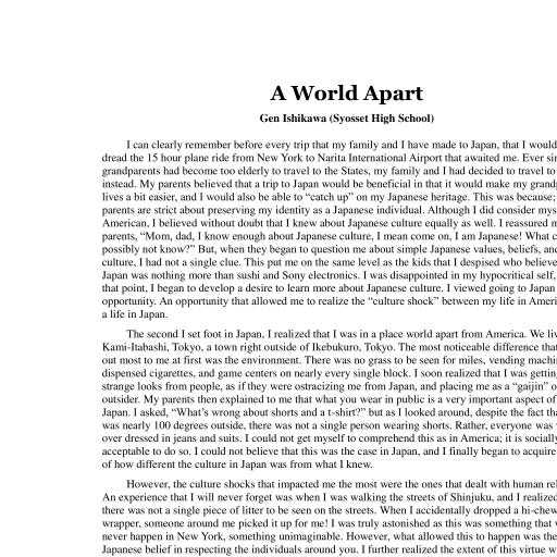 High School Division 1st Place Best Essay Award & Consul General of Japan Special Award