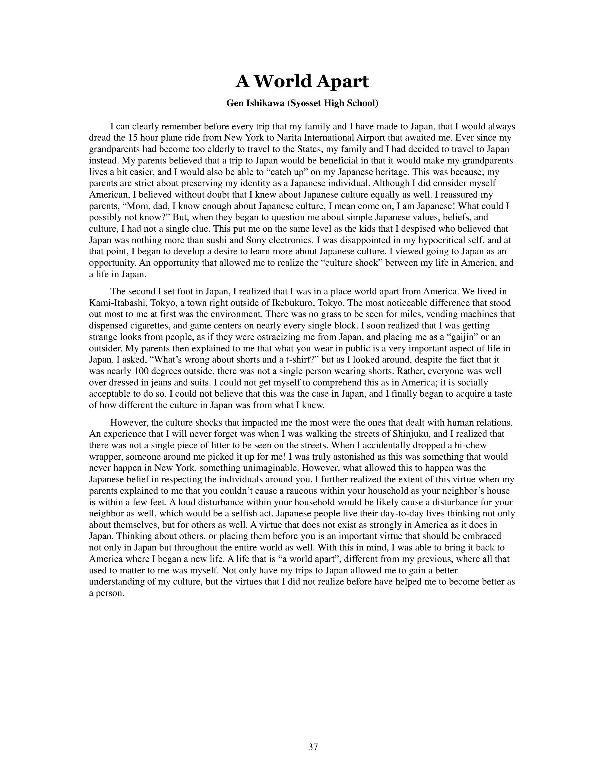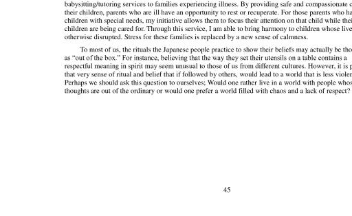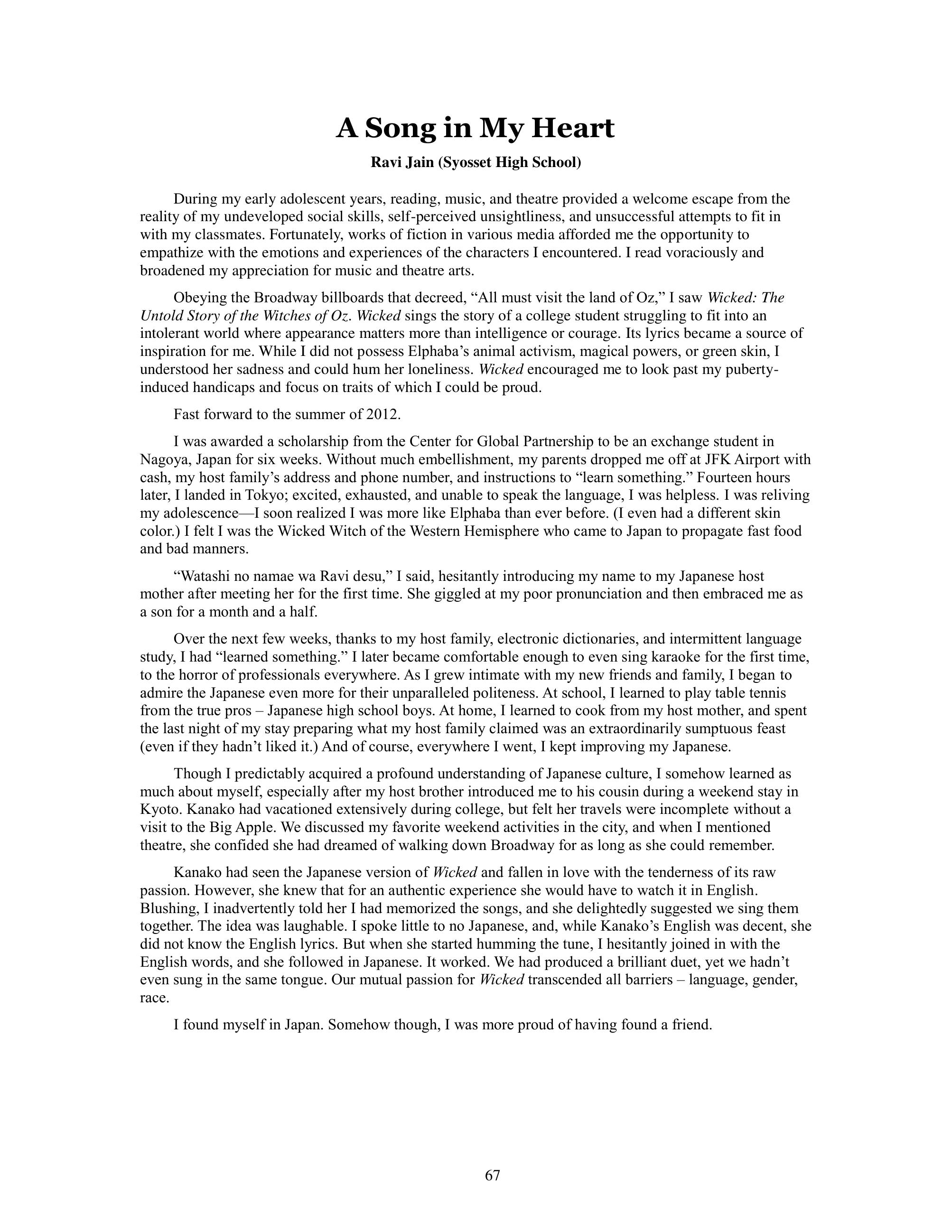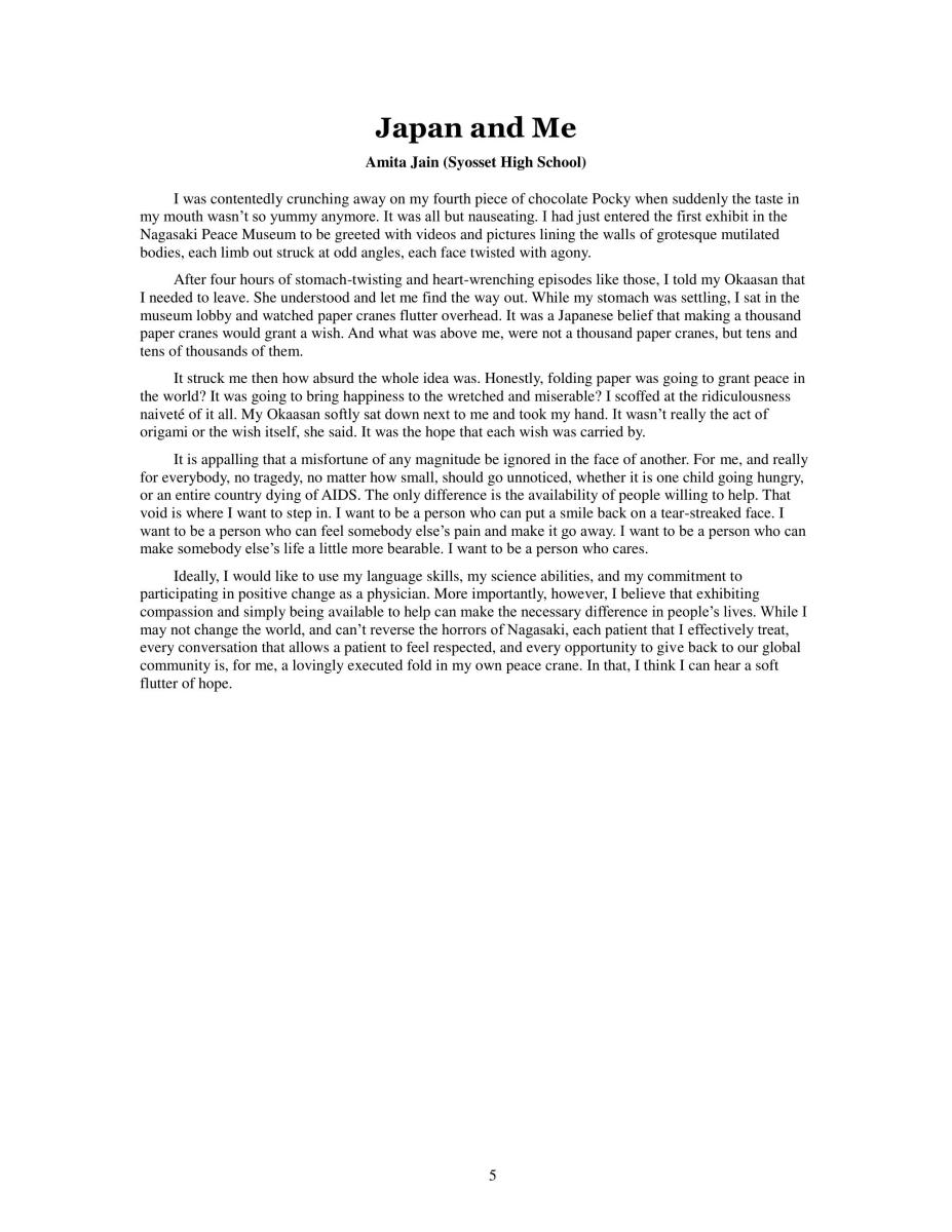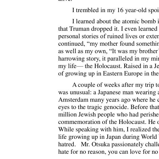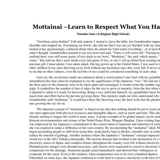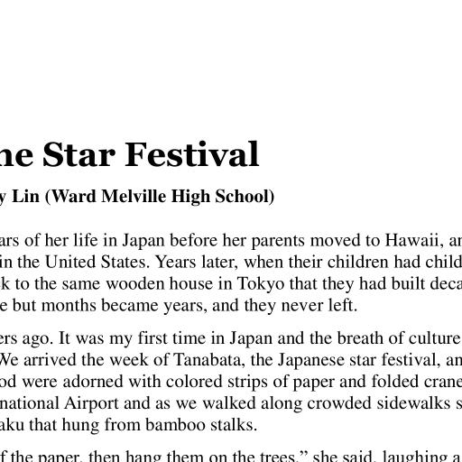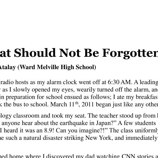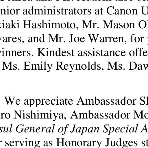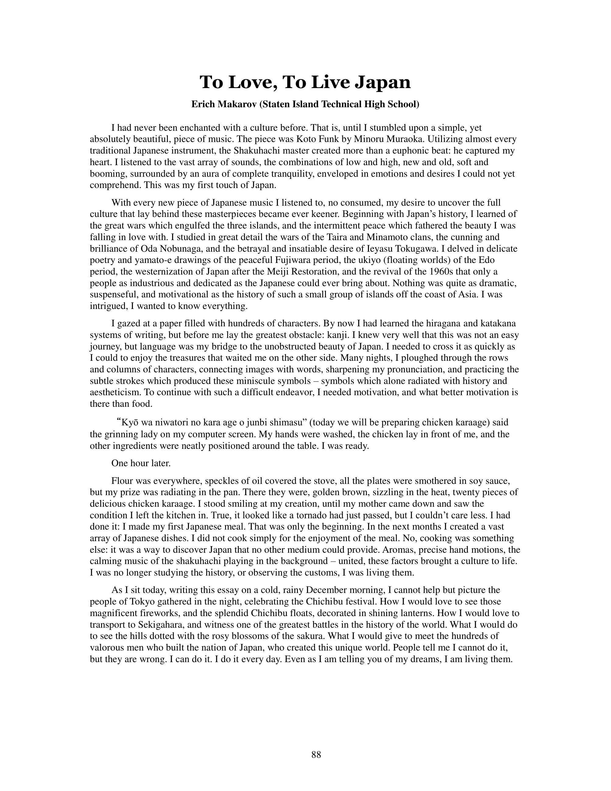 High School Division 1st Place Best Essay Award & Consul General of Japan Special Award