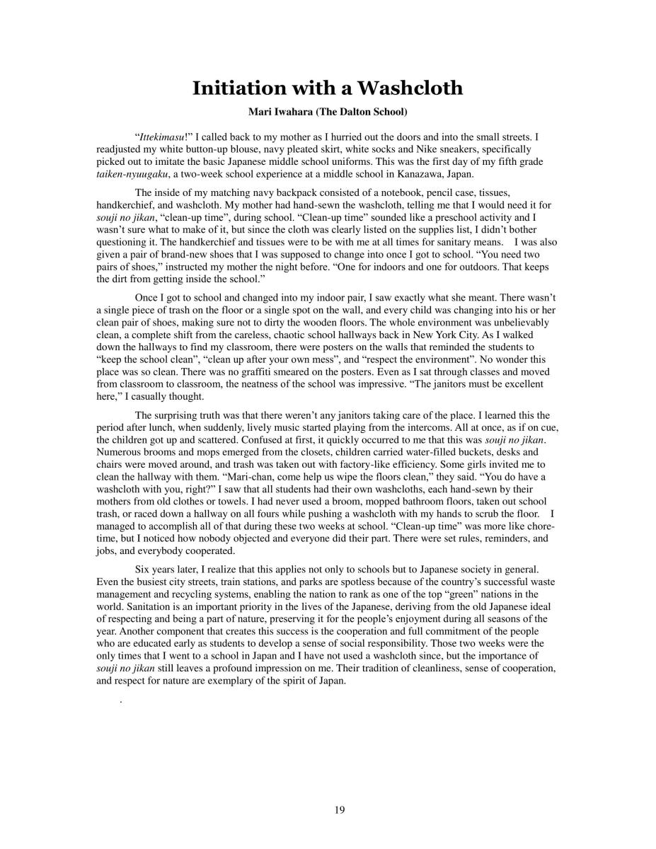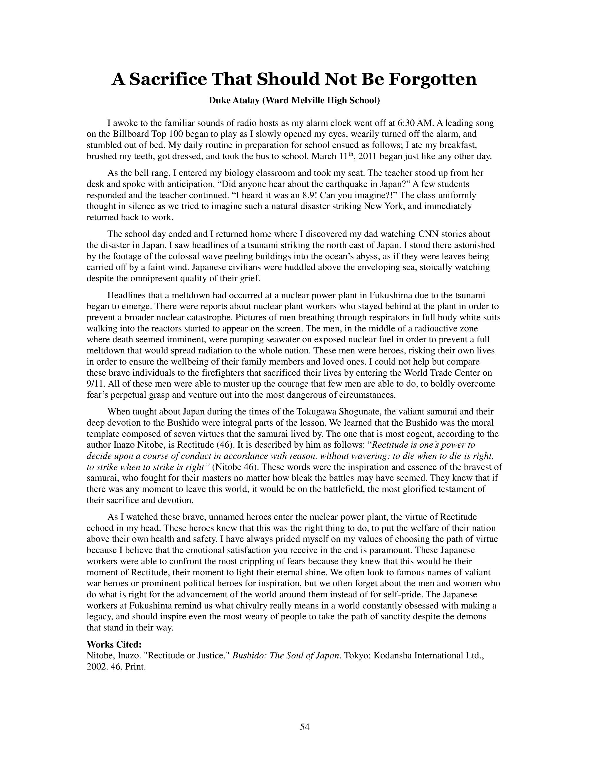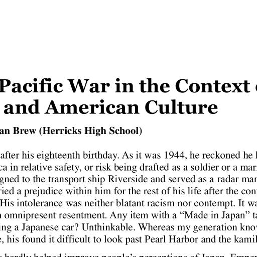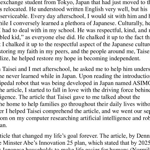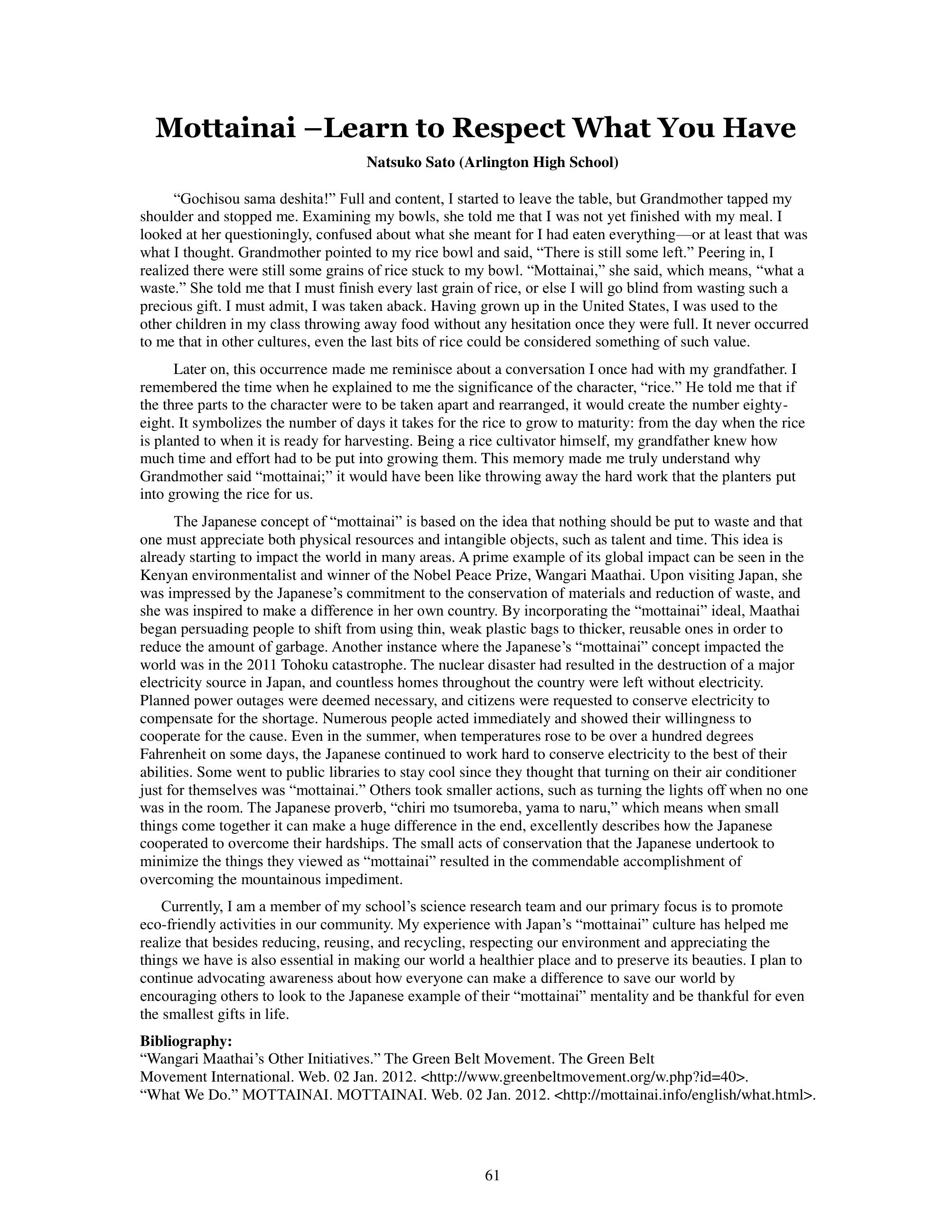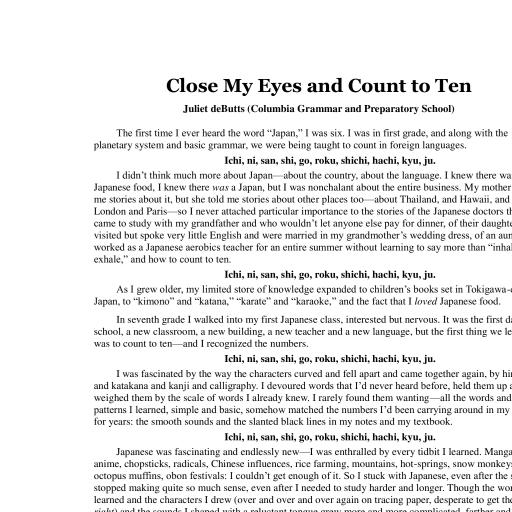 High School Division 1st Place Best Essay Award & Consul General of Japan Special Award