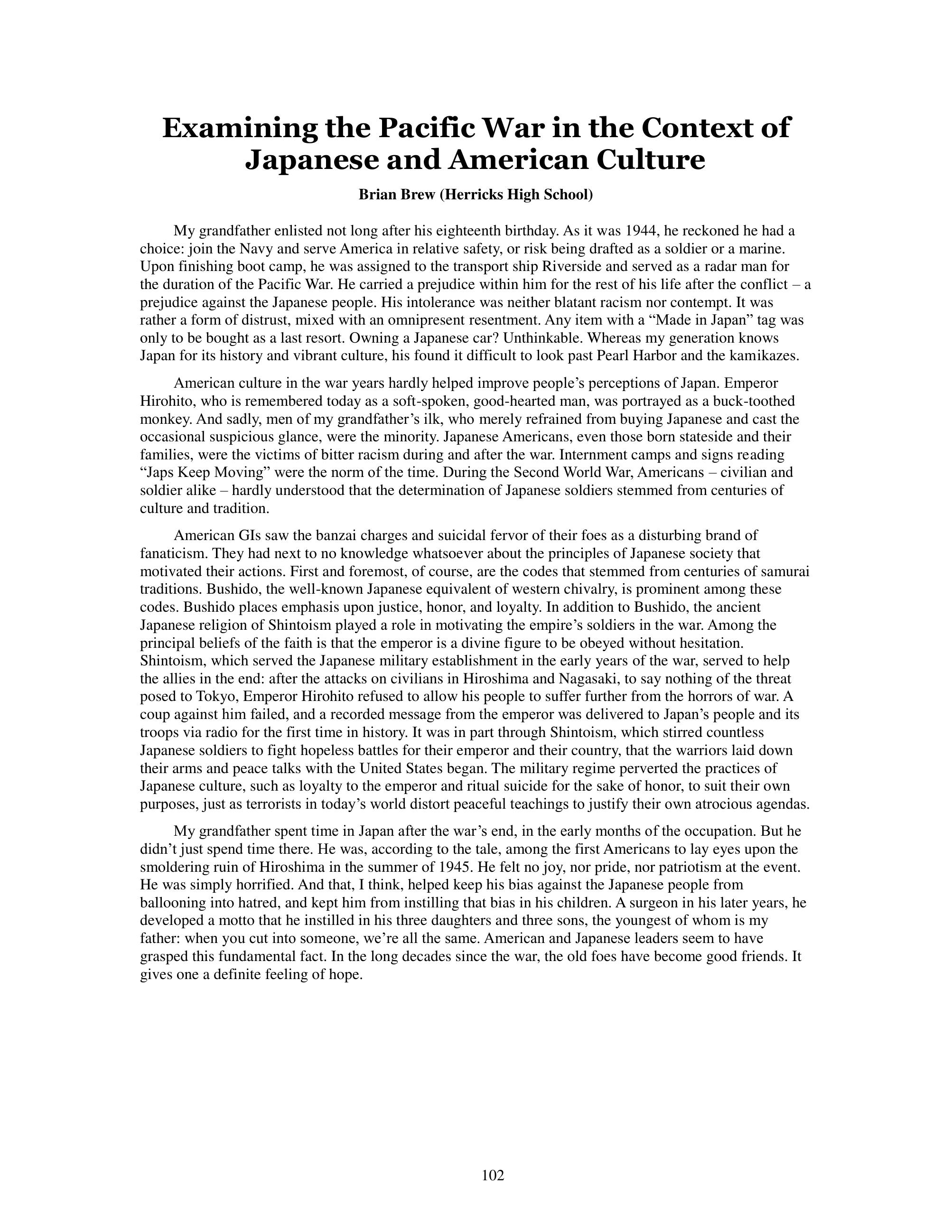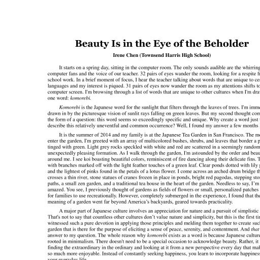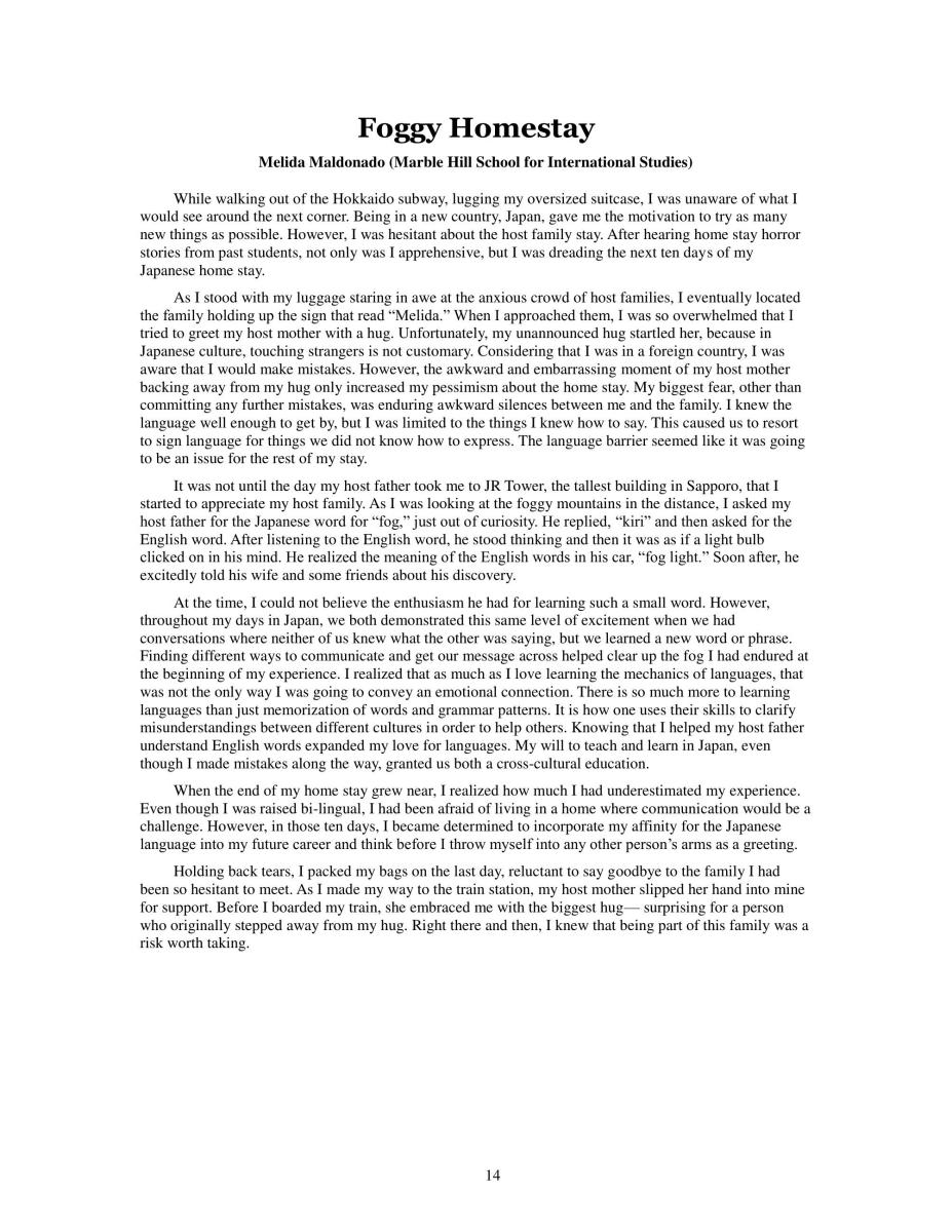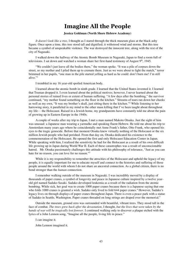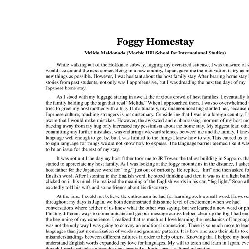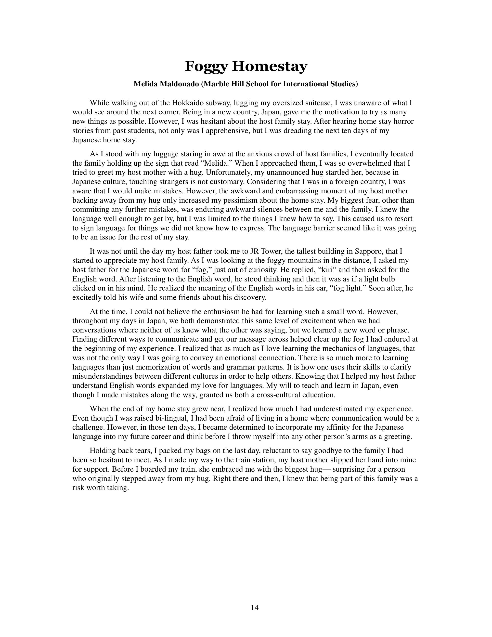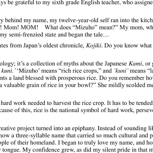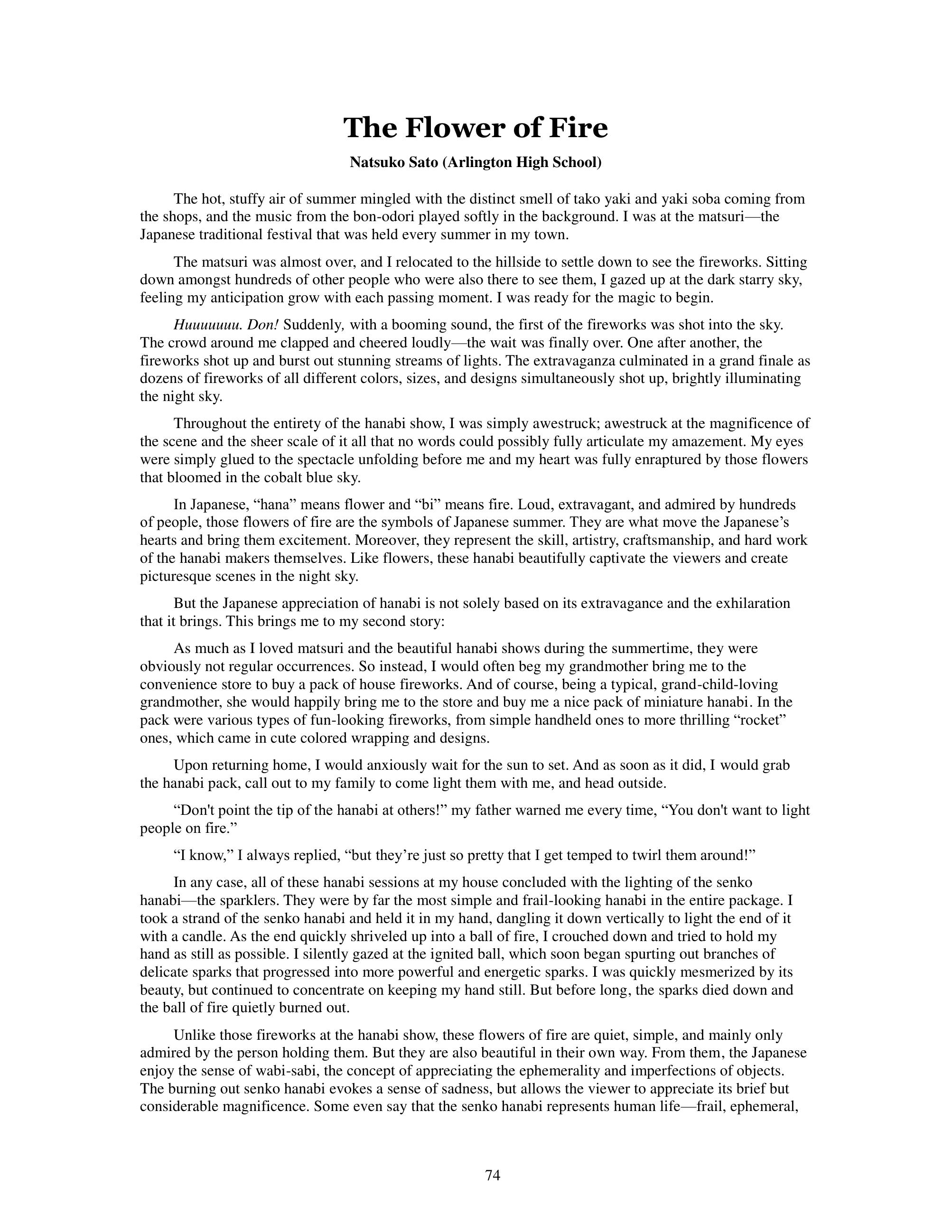 High School Division 1st Place Best Essay Award & Consul General of Japan Special Award