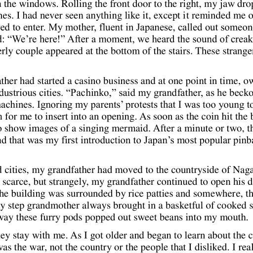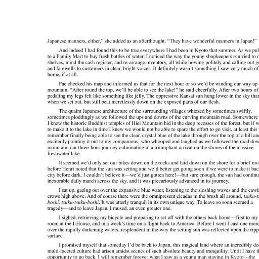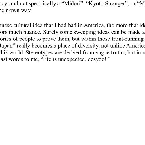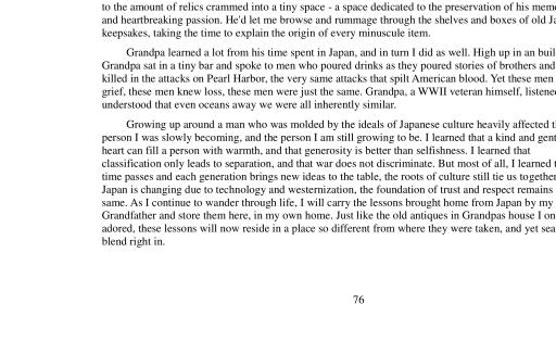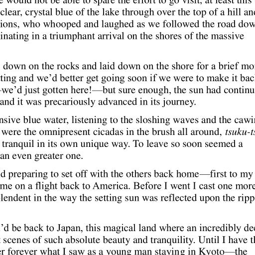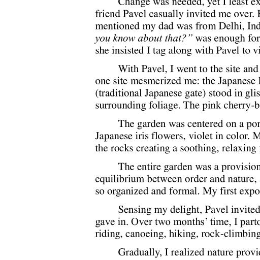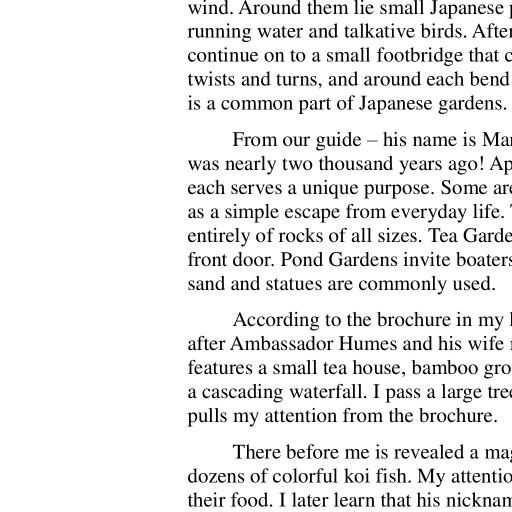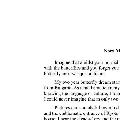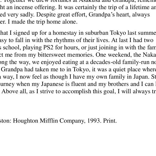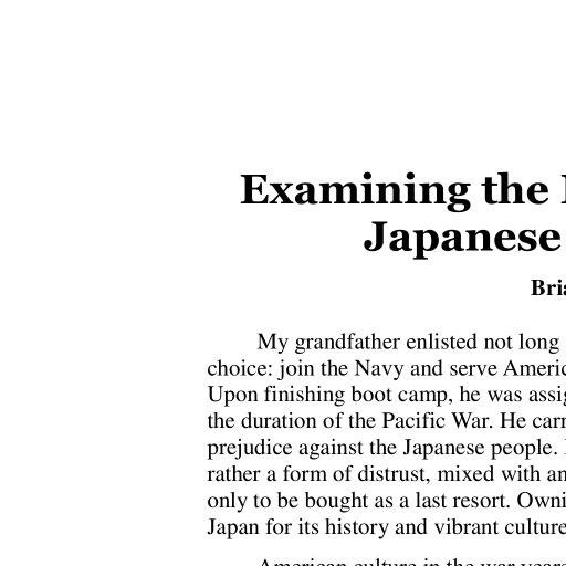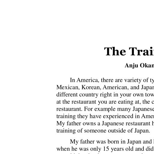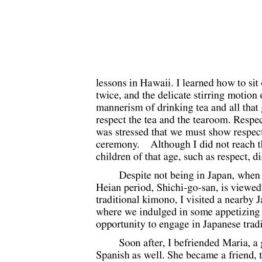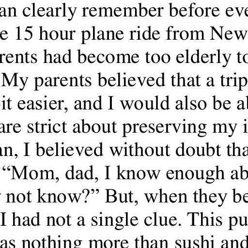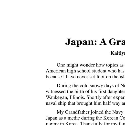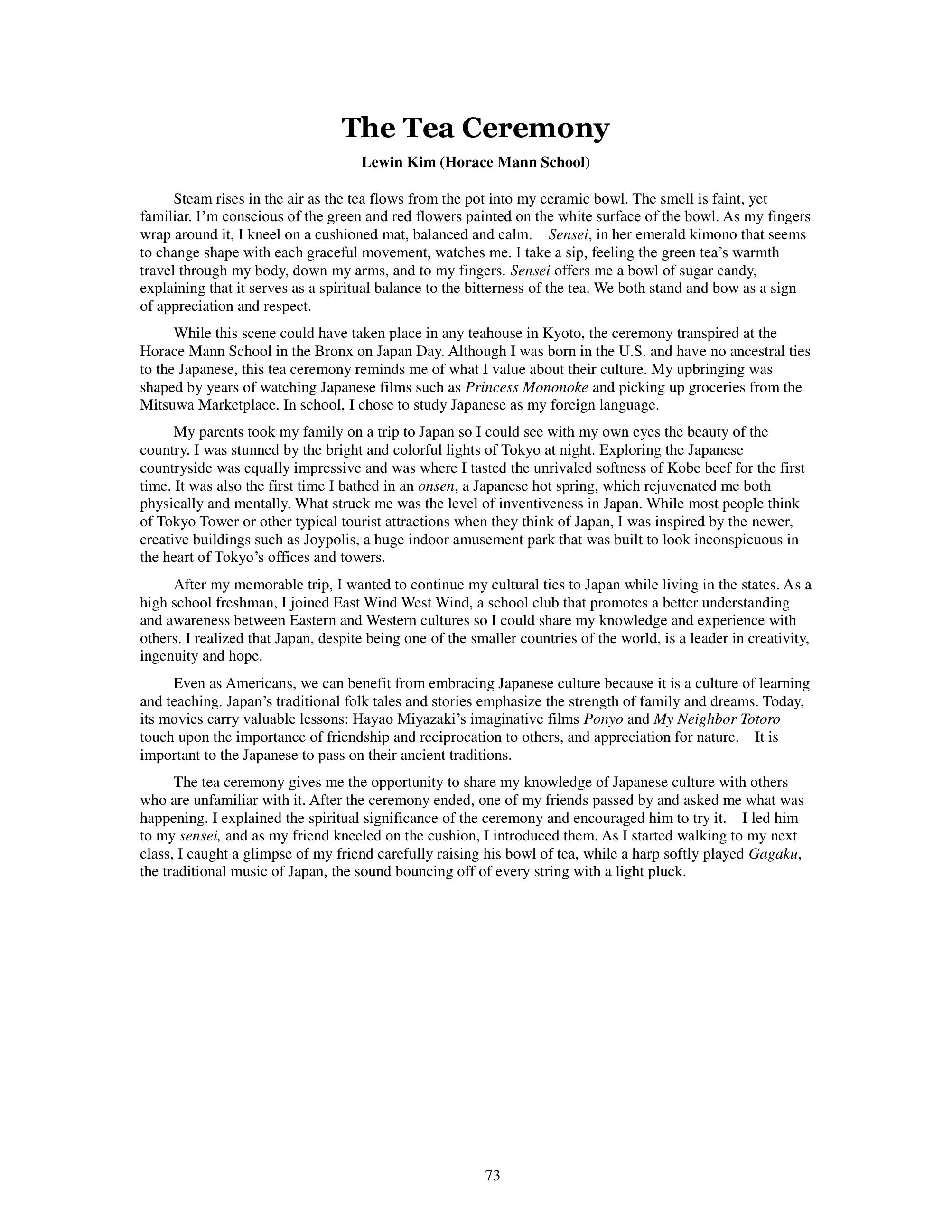 “A Buddhist Culture: Japan and the Monks”Kazuo Nakamura (Northfield Mount Hermon)I rested my head against the window as the train departed Tokyo Station. A temple, that is where I was going to be for the next eight days. My protests to my parents did not change anything, I had no choice but to go. Headed toward Kyoto, my long journey, reluctantly, began.