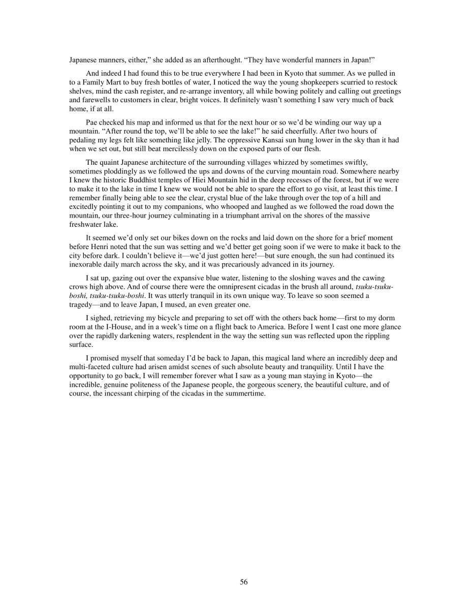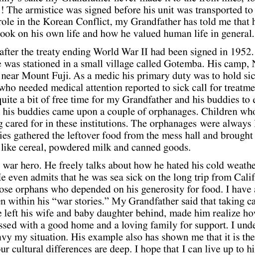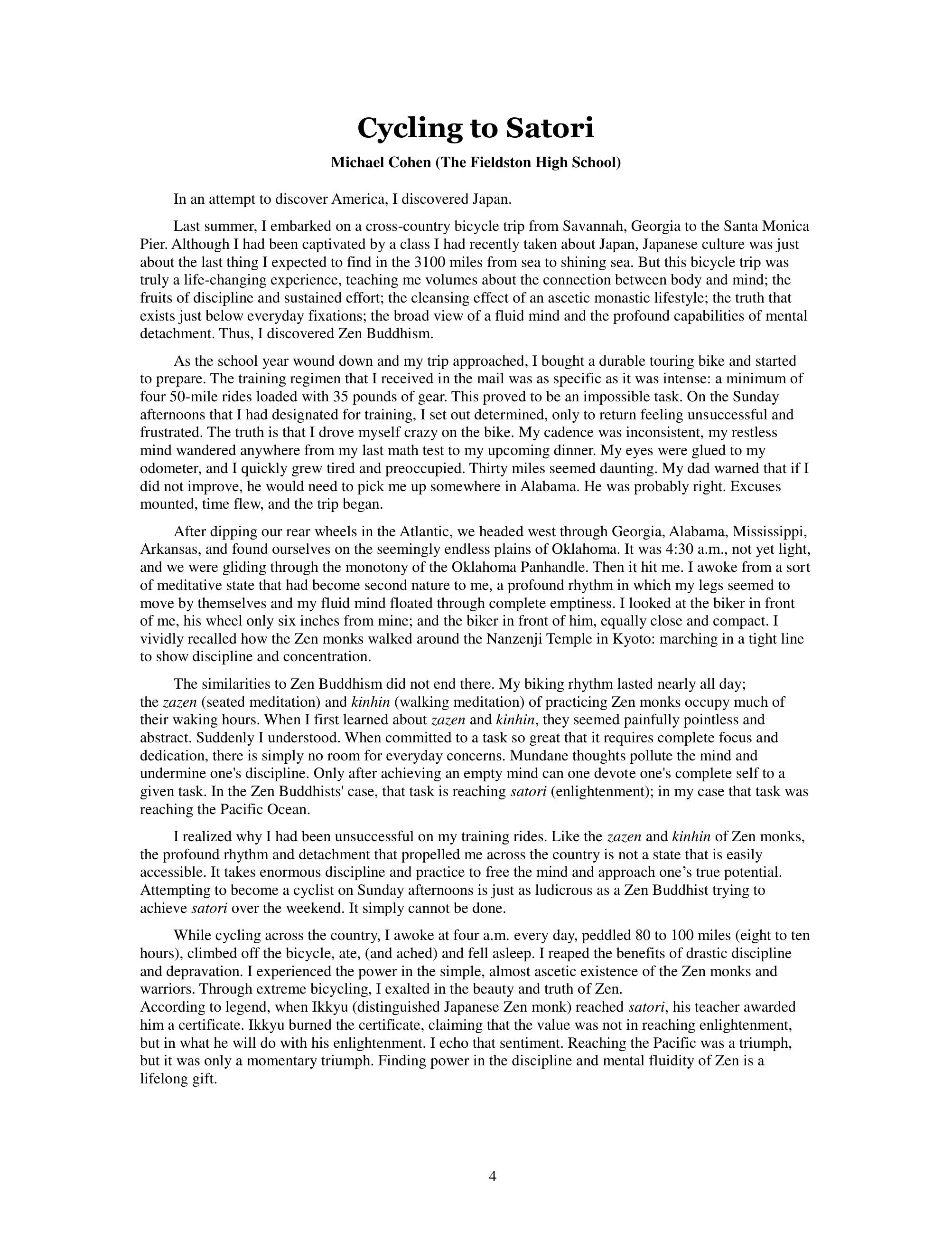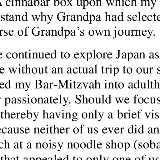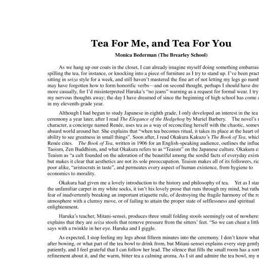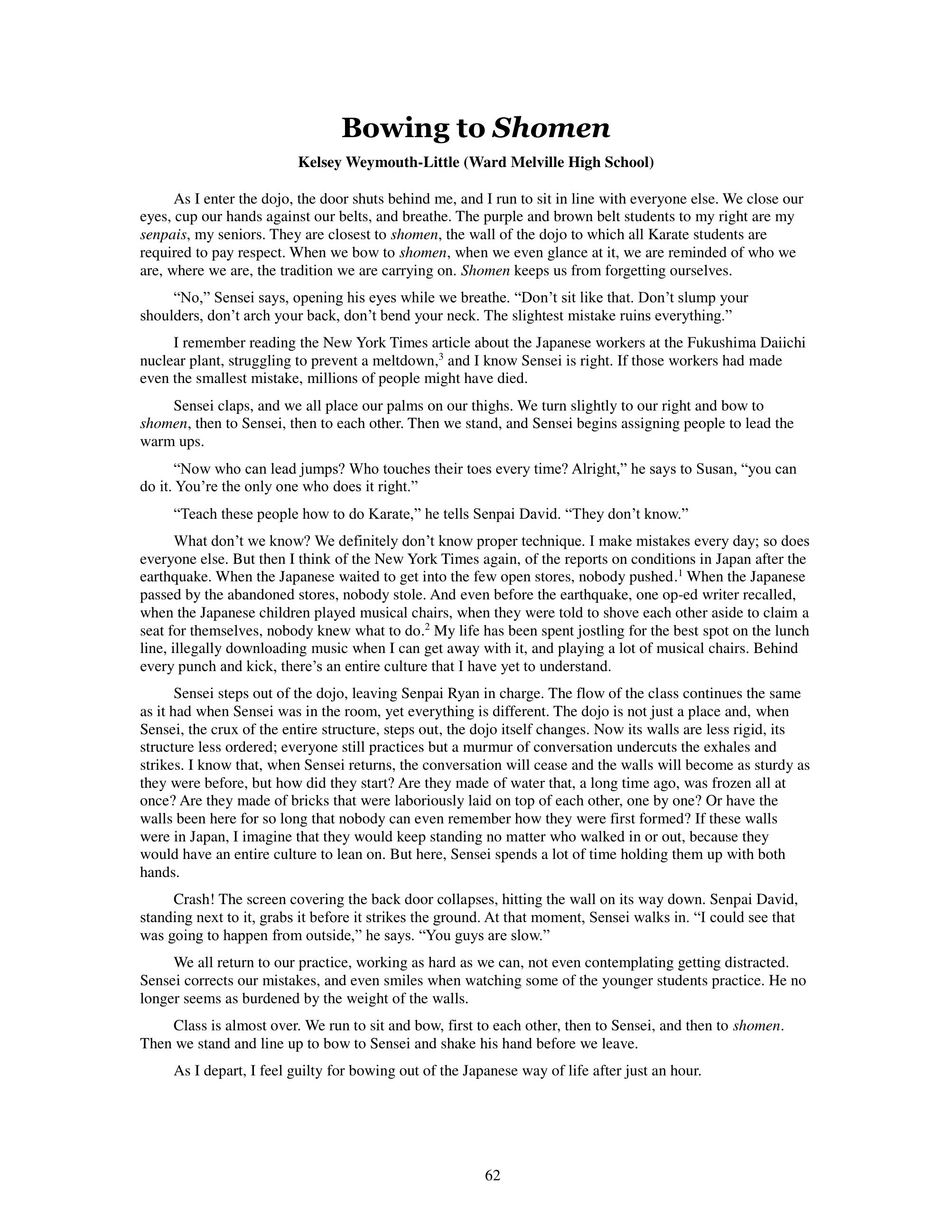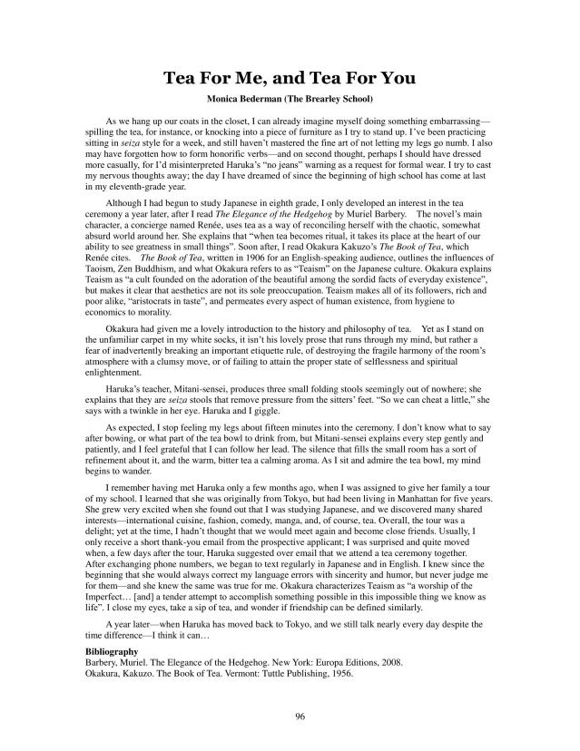 “A Buddhist Culture: Japan and the Monks”Kazuo Nakamura (Northfield Mount Hermon)I rested my head against the window as the train departed Tokyo Station. A temple, that is where I was going to be for the next eight days. My protests to my parents did not change anything, I had no choice but to go. Headed toward Kyoto, my long journey, reluctantly, began.