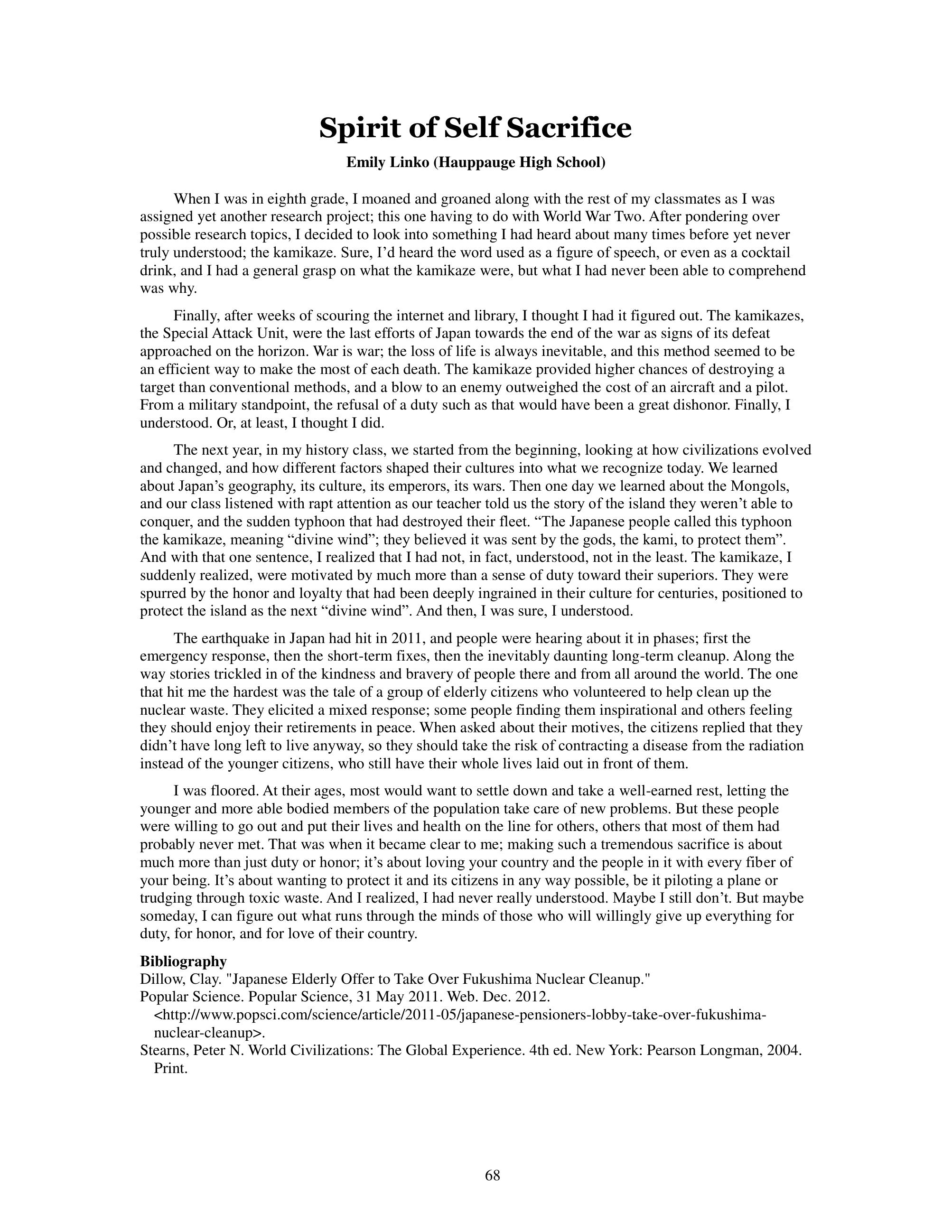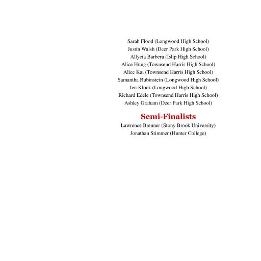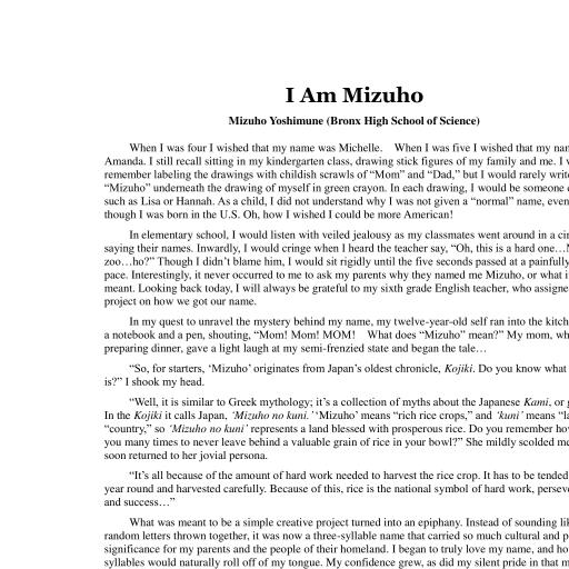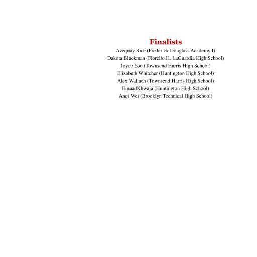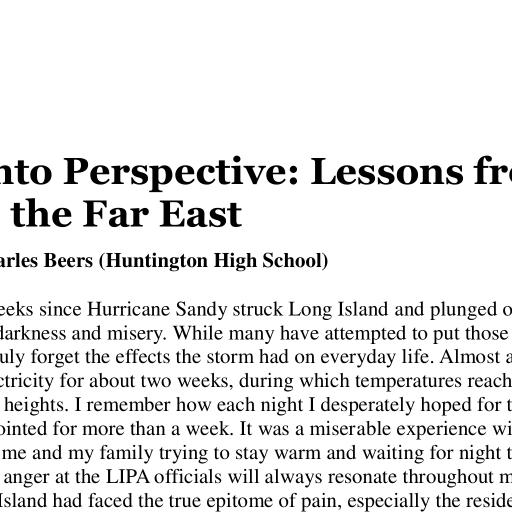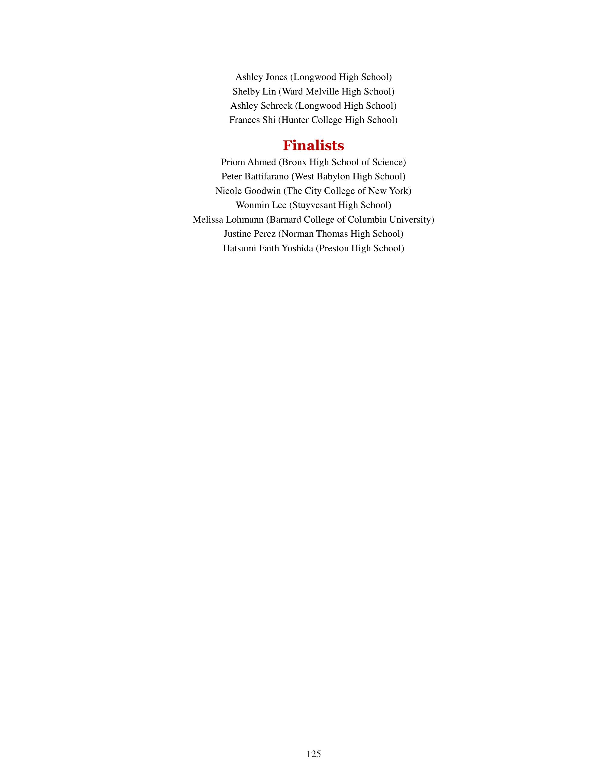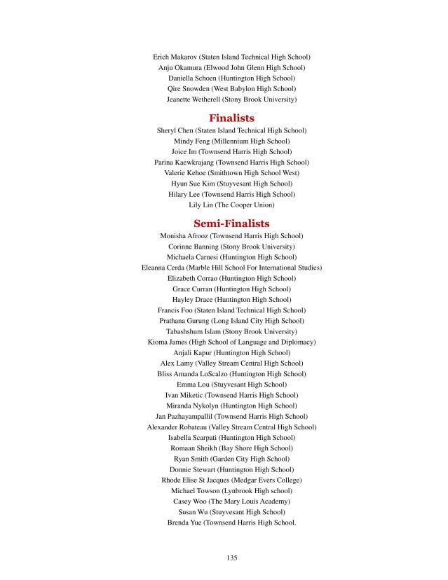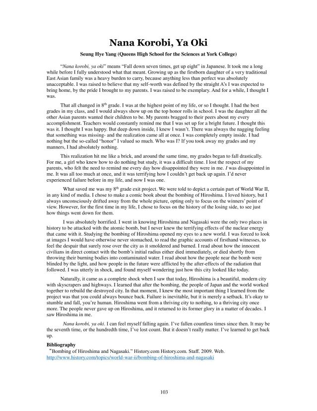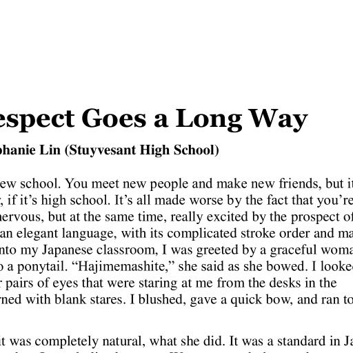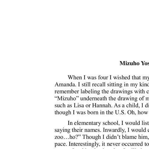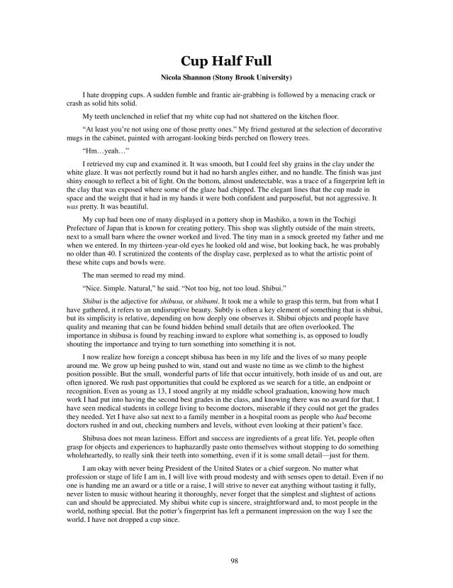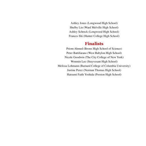 “Track: The Mental Game”Rachel Kitagawa (Syosset High School)“You have to run with your heart, not just for yourself, but for each other. When you feel like giving up, know that everyone else is facing the same pain, and they aren’t giving up.” I hear my coach say.