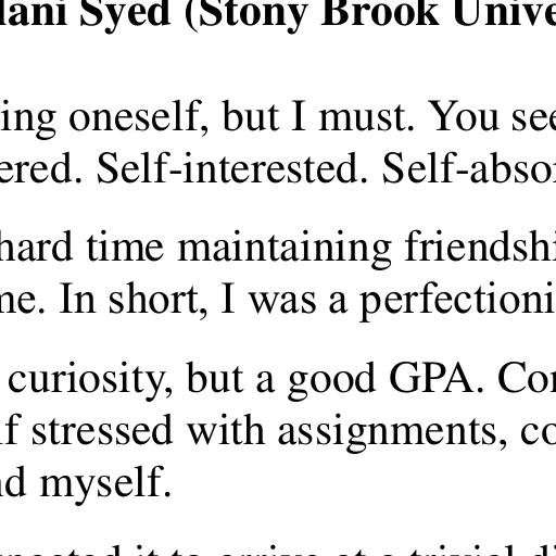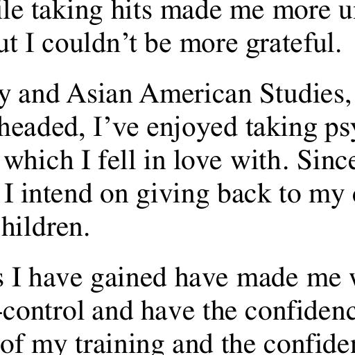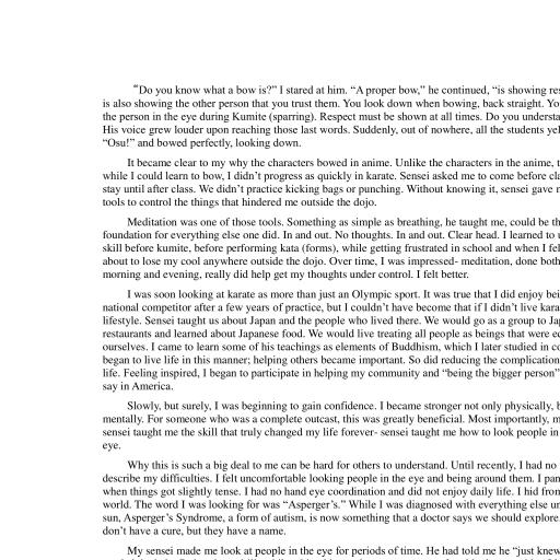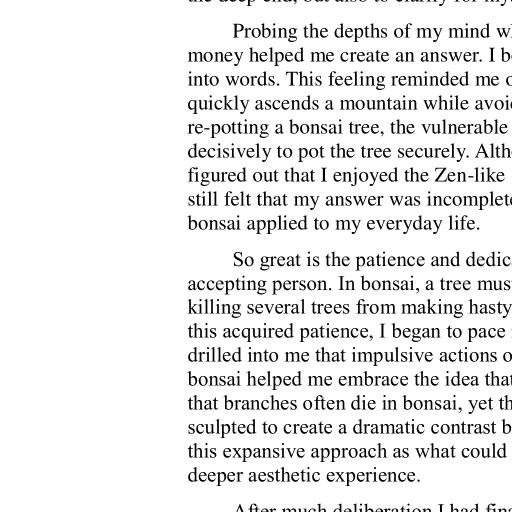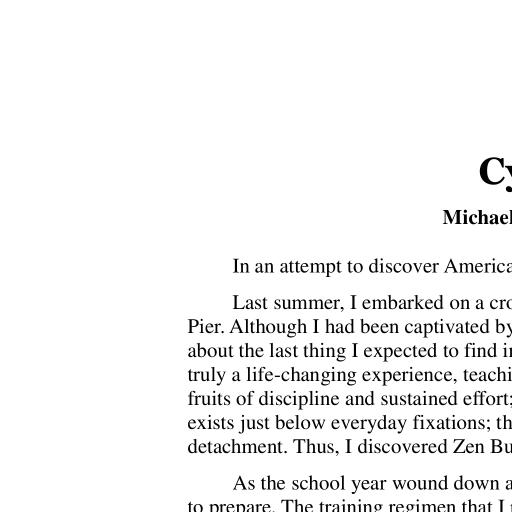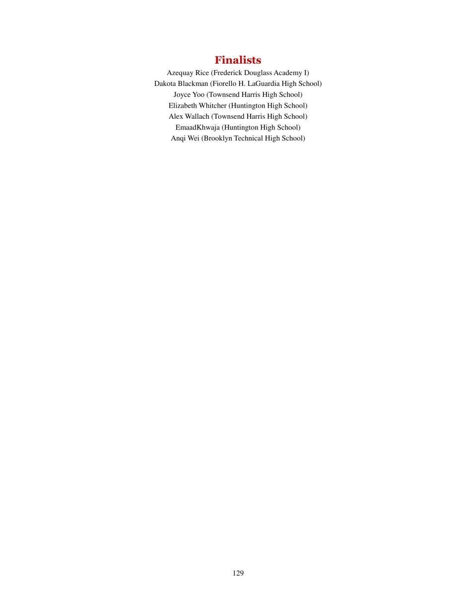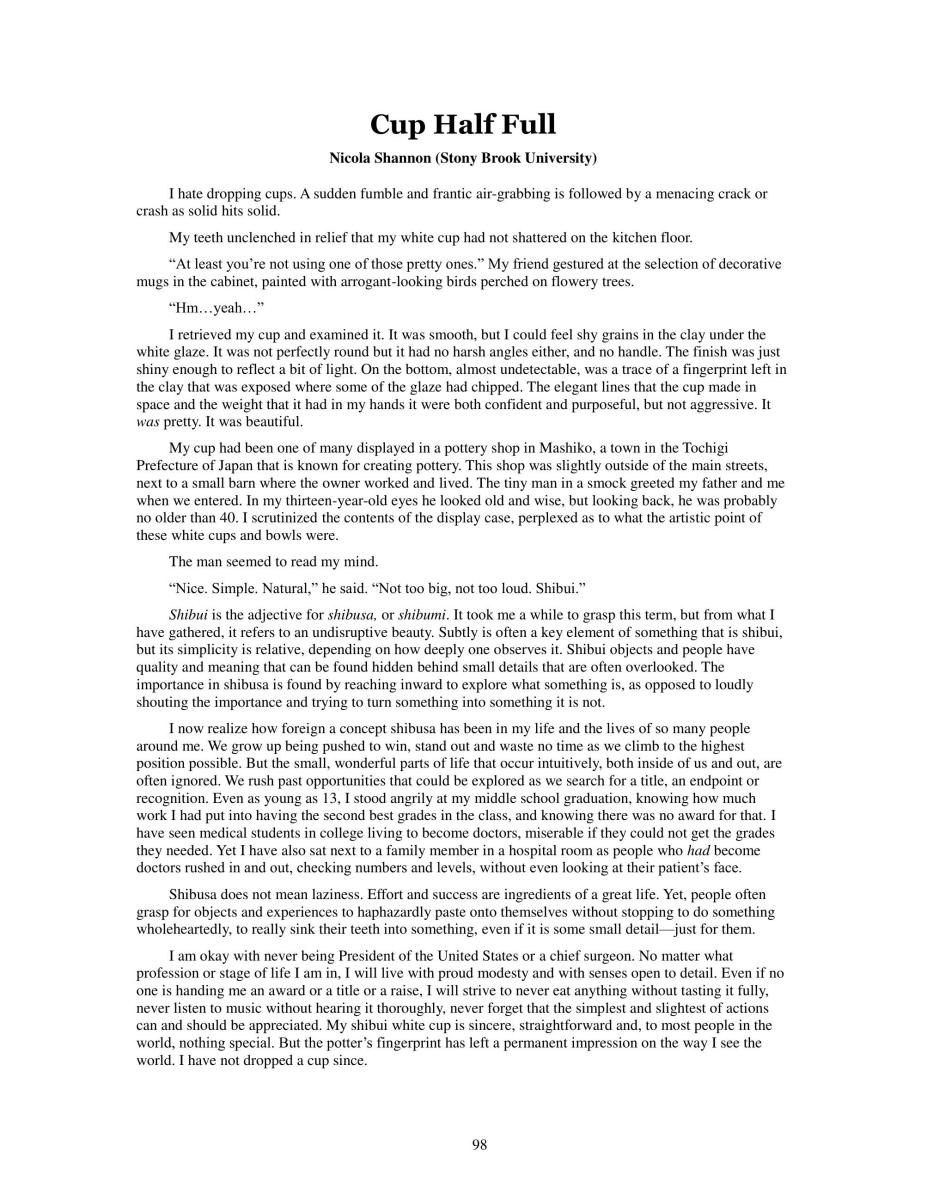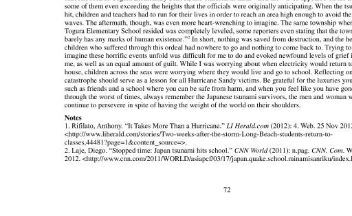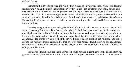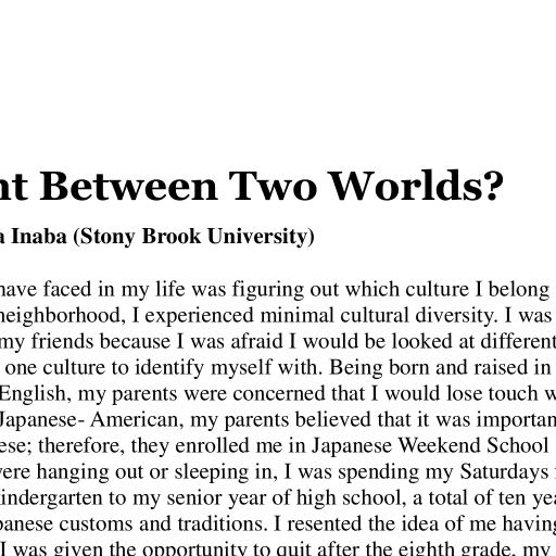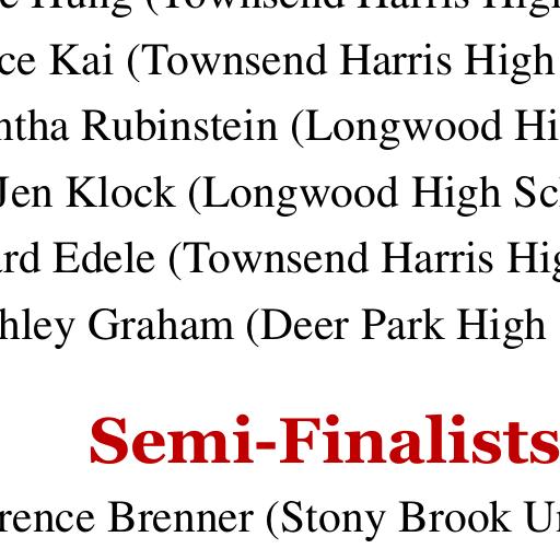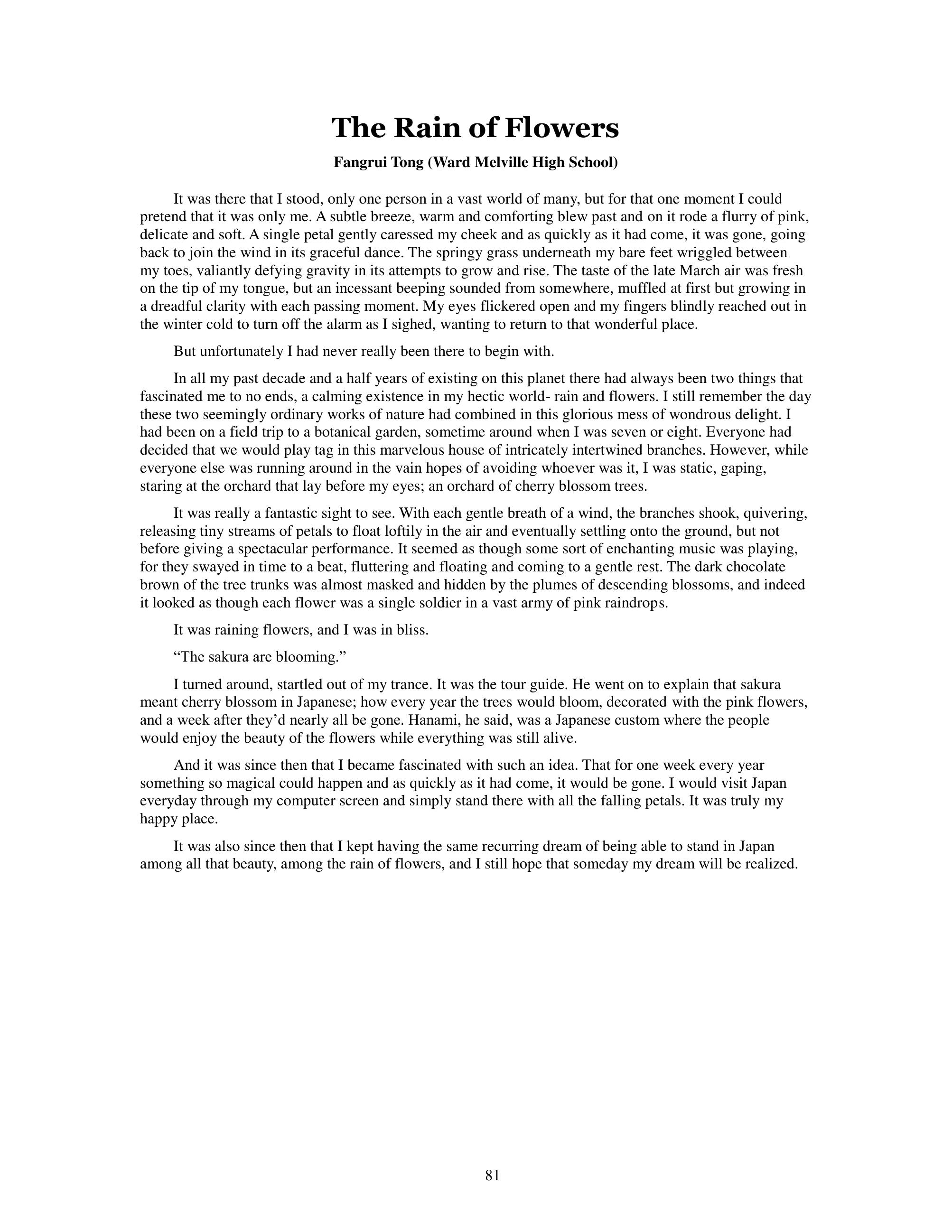 “Track: The Mental Game”Rachel Kitagawa (Syosset High School)“You have to run with your heart, not just for yourself, but for each other. When you feel like giving up, know that everyone else is facing the same pain, and they aren’t giving up.” I hear my coach say.