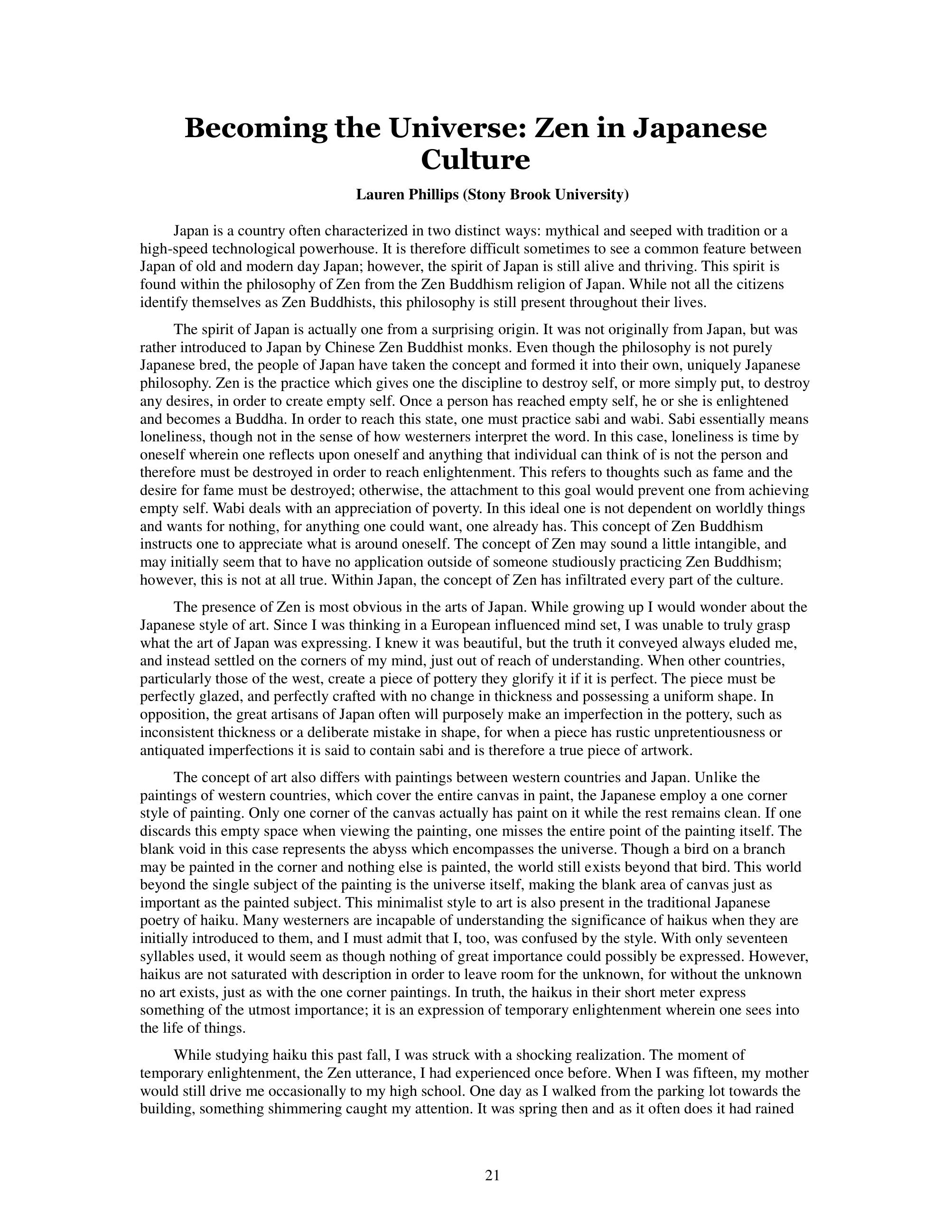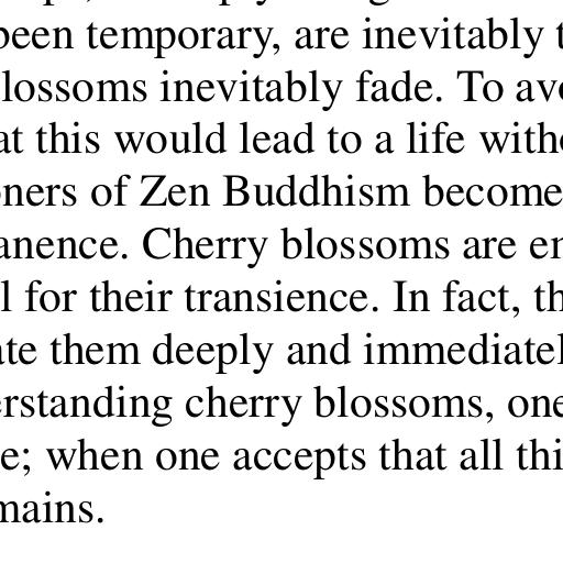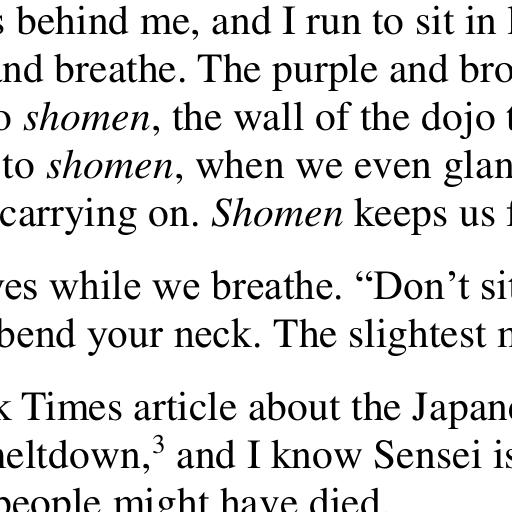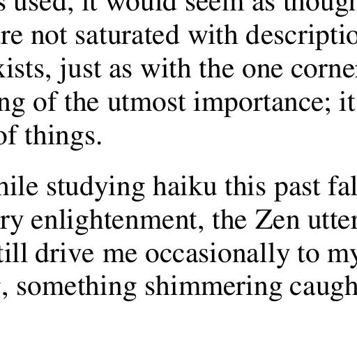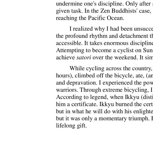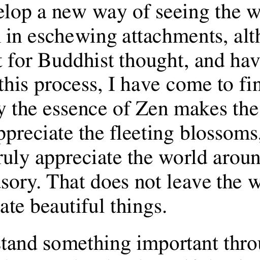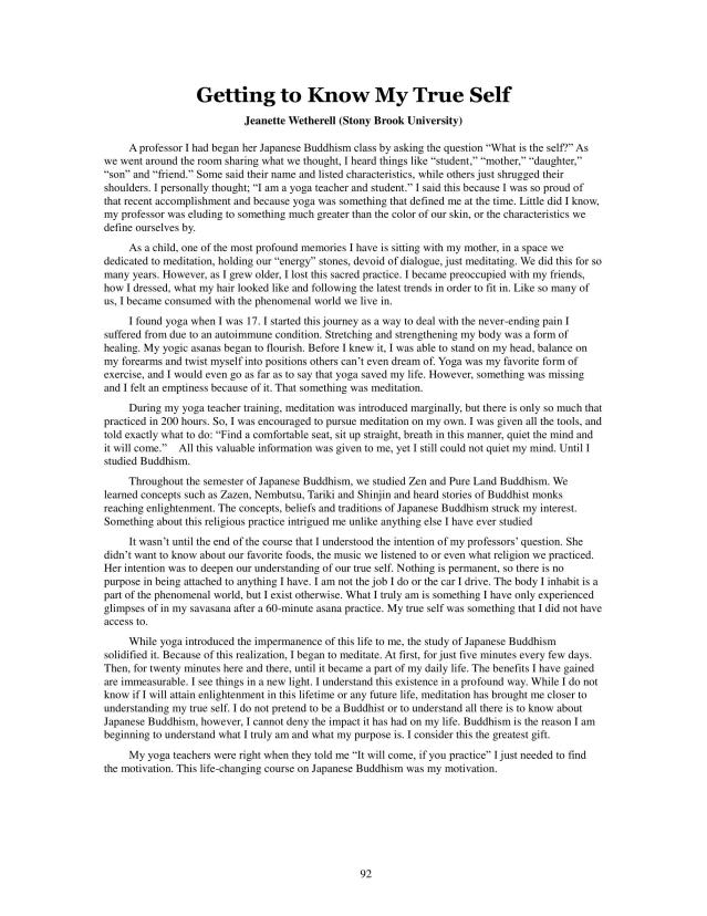 “Wrong.”Mohammed Ali (Stony Brook University)Dogen reached enlightenment when he witnessed his sensei beating another student with a slipper. I started sniggering when Sensei mentioned this, breaking the silence in our class. Everyone glanced at me and then looked back at Sensei, apparently not having the same image as I did of a very serious teacher beating a cowering and repentant student, and Dogen, instead of feeling the gravity of this scene, rushing off to burn incense in his room. I could almost see the lightbulb over his head and hear him exclaiming, “Eureka!” as he rushed off in the culturally confused corridors of my imagination. I bit my lip to control my laughter but another thought sobered me up effectively. For monks to come to Mount Hiei to study under a sensei and voluntarily subject themselves to a relationship where it was possible for them to be physically beaten as a normal course of action to study Buddhism, enlightenment must be serious business indeed. Students sat at the feet and mercy of their masters simply for the possibility of enlightenment.