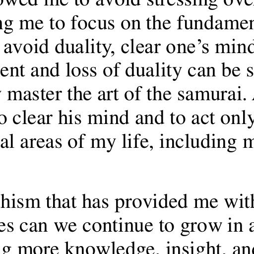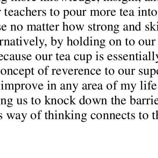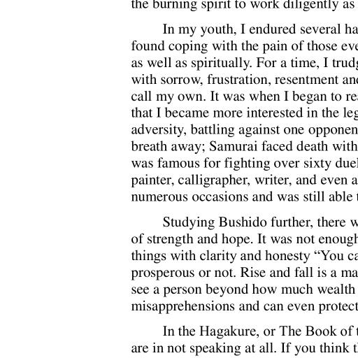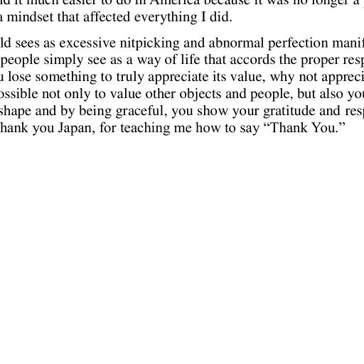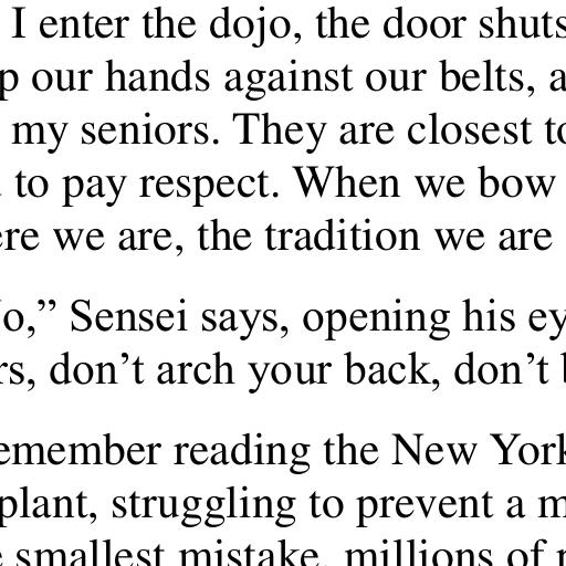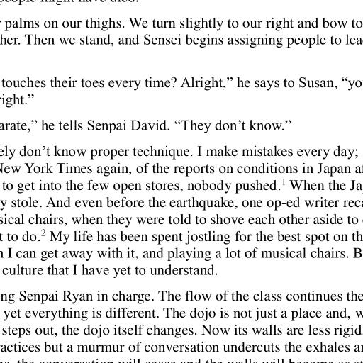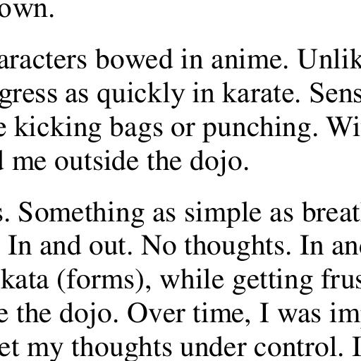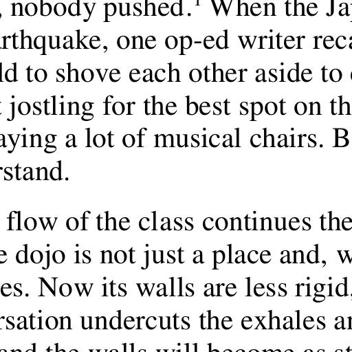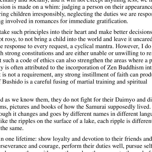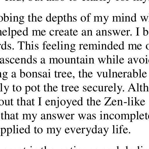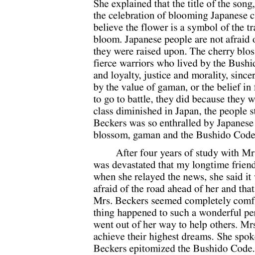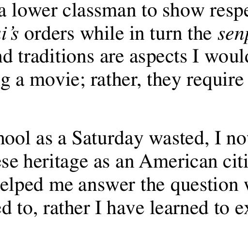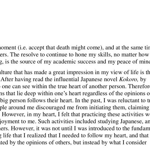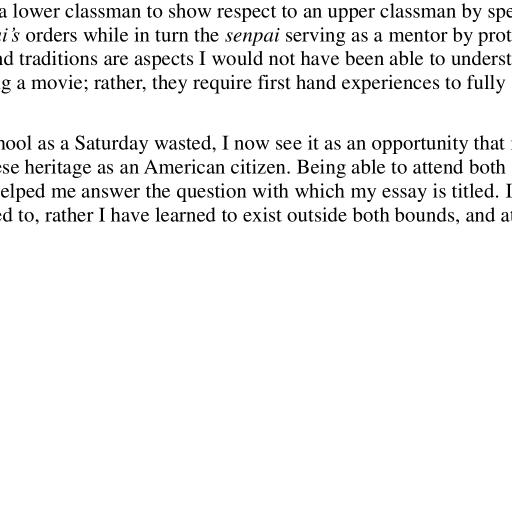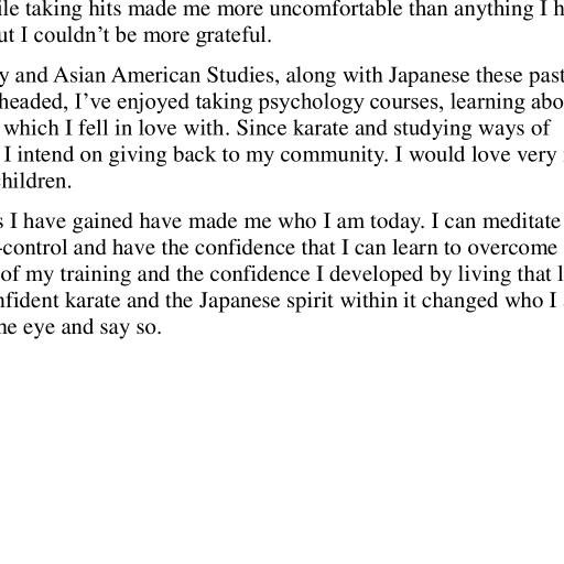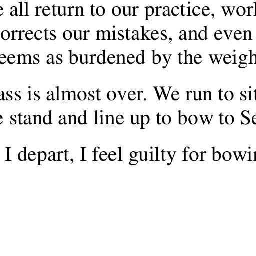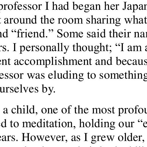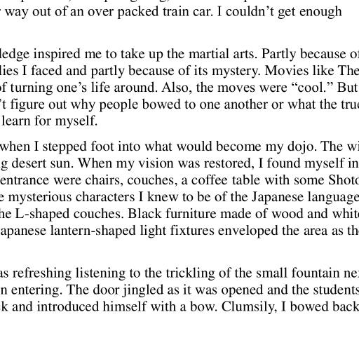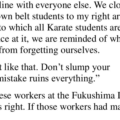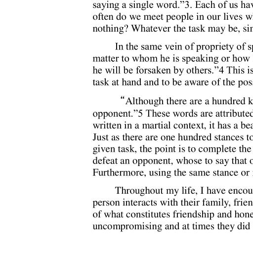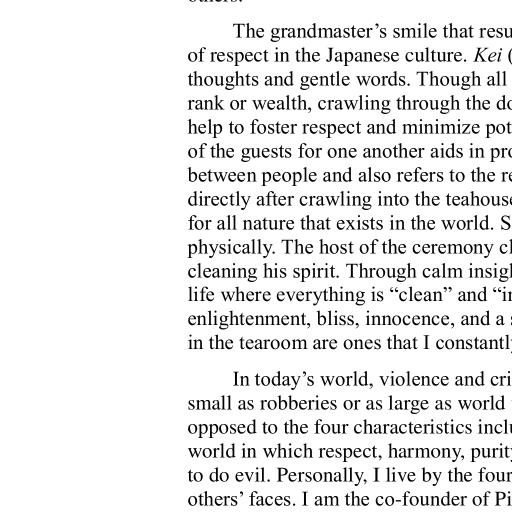 I was positive Sensei had asked us this question not for us to argue our personal opinions, but to hear what they were. It wasn’t that she didn’t desire an explanation, but that she was waiting to see if we comprehended the proper way to understand a question such as this.
