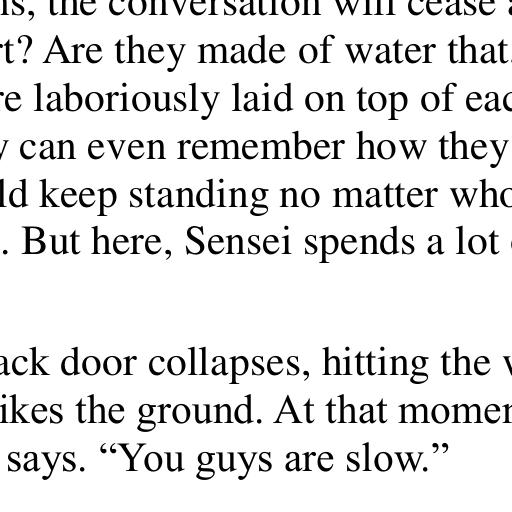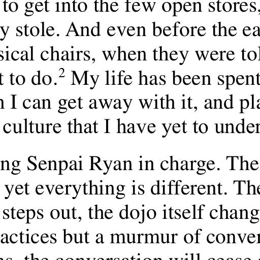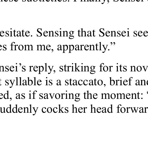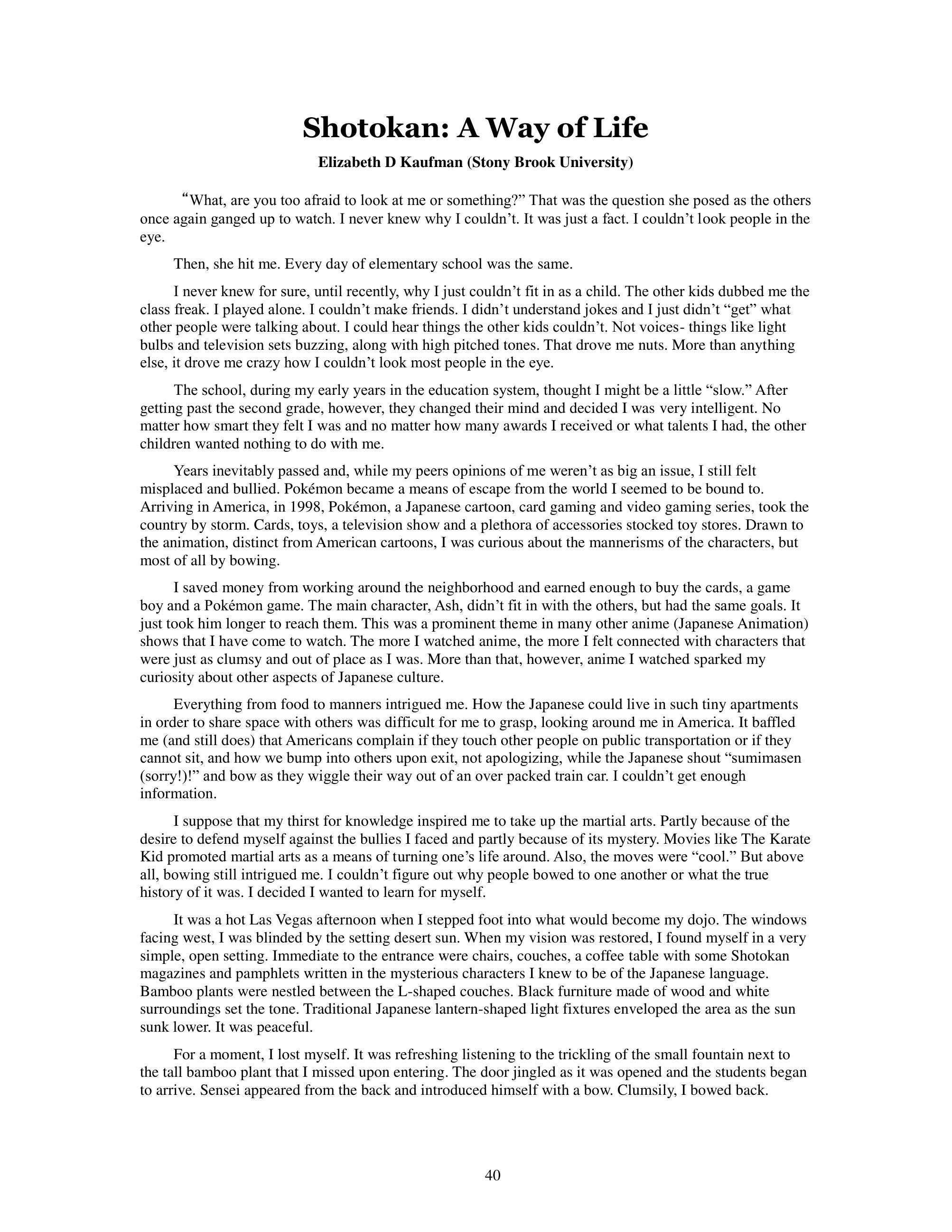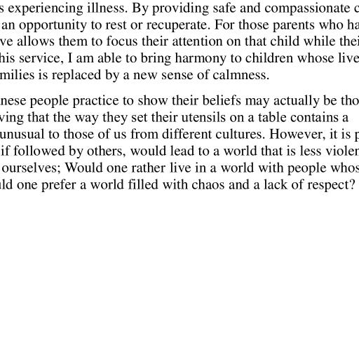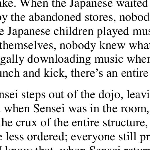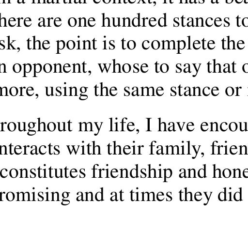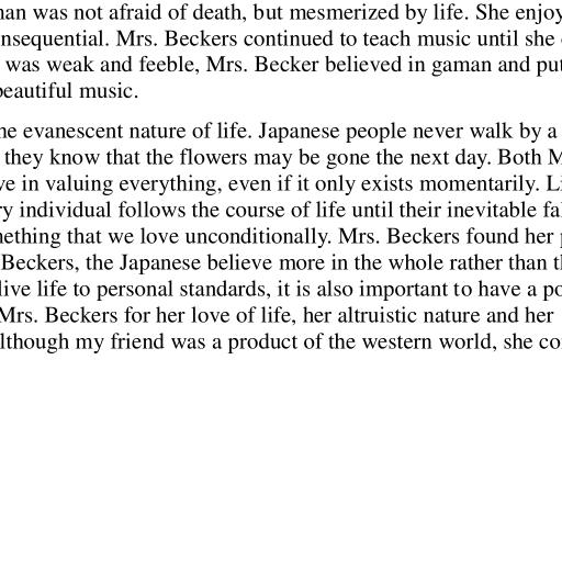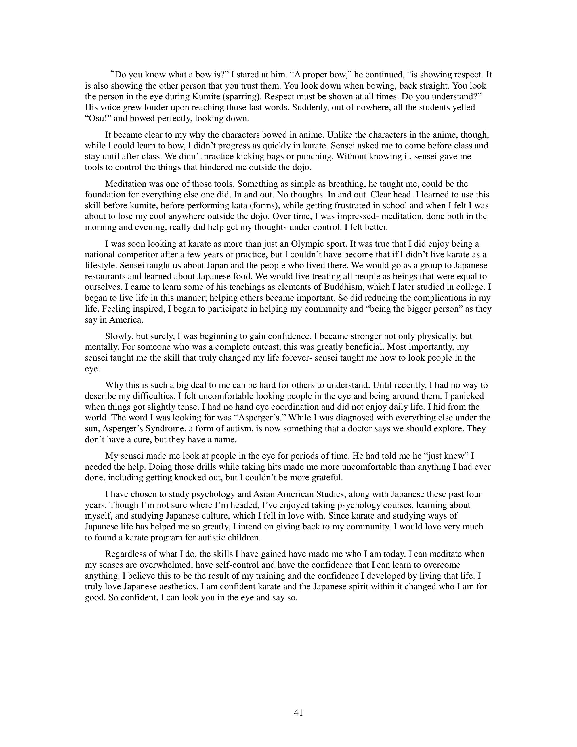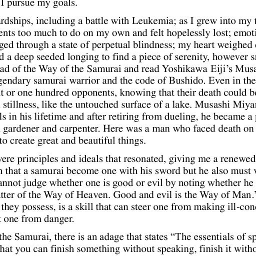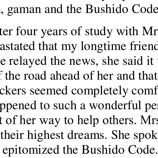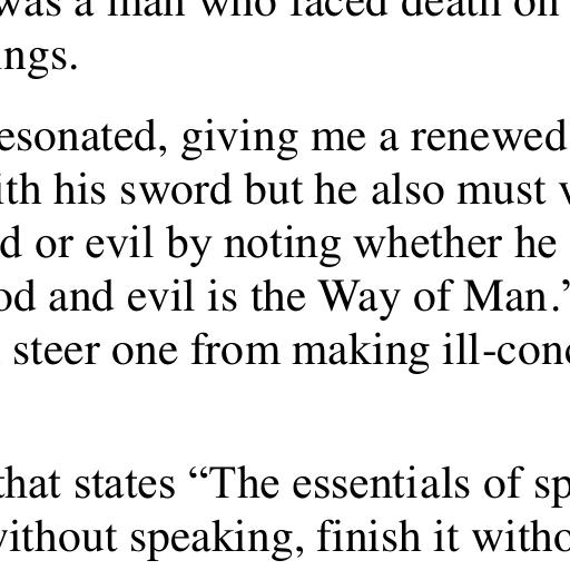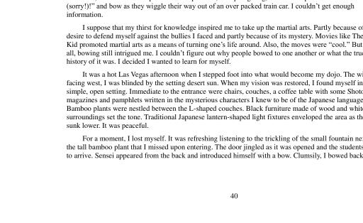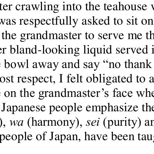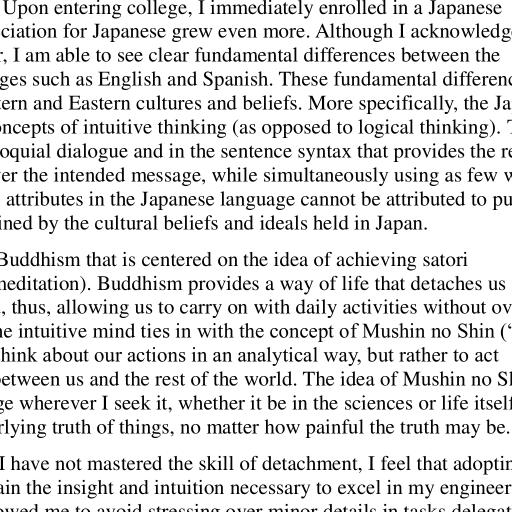I was positive Sensei had asked us this question not for us to argue our personal opinions, but to hear what they were. It wasn’t that she didn’t desire an explanation, but that she was waiting to see if we comprehended the proper way to understand a question such as this.