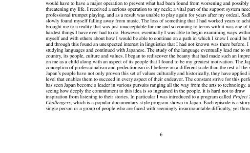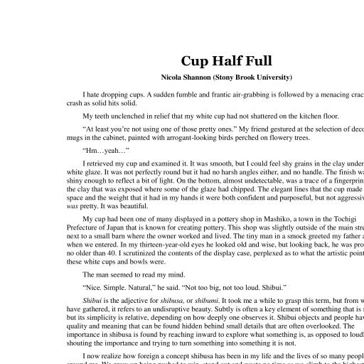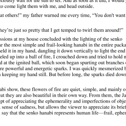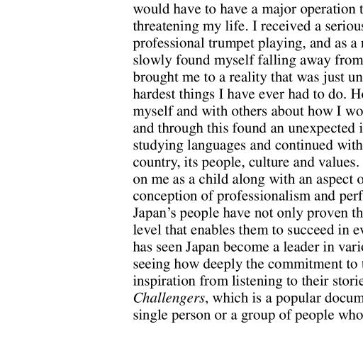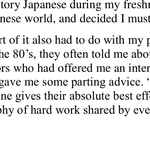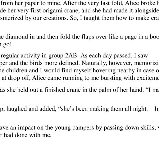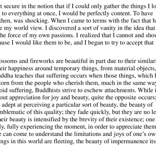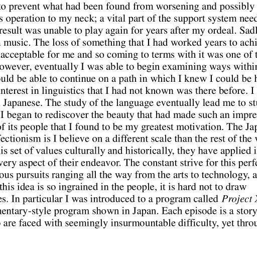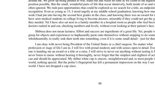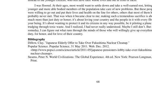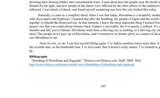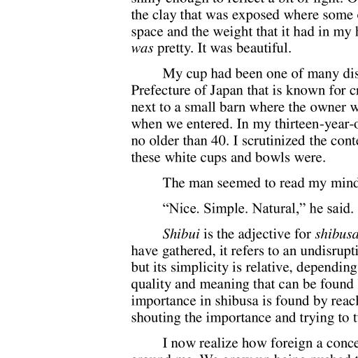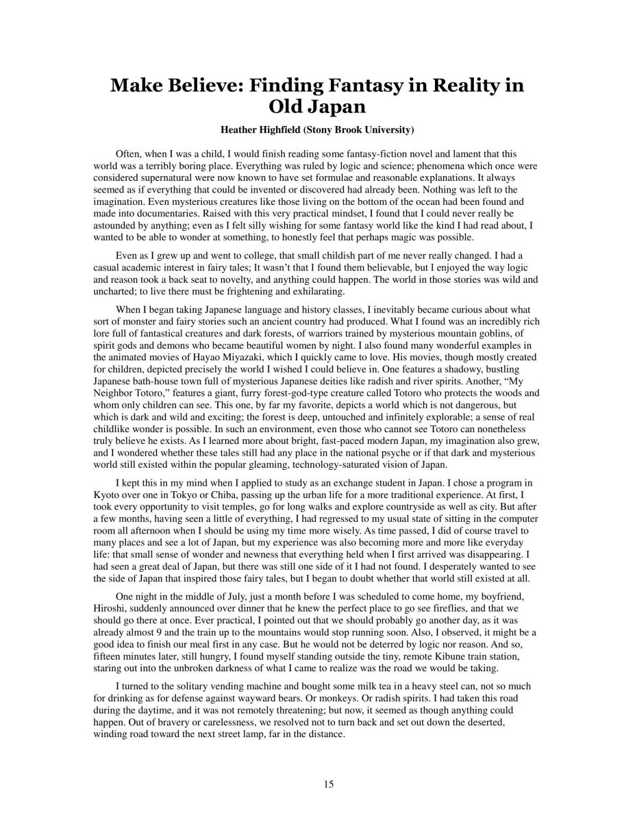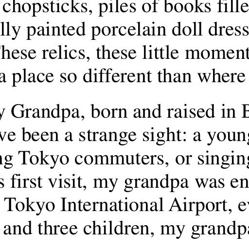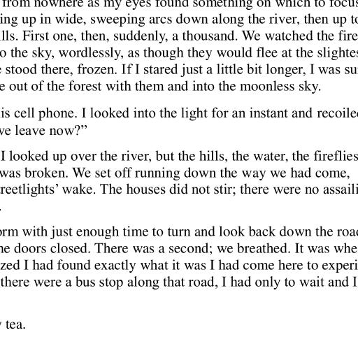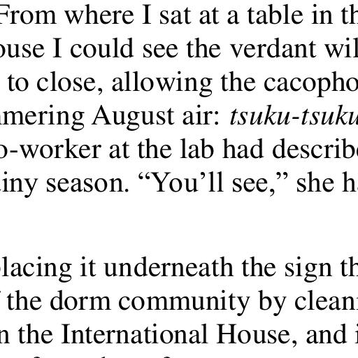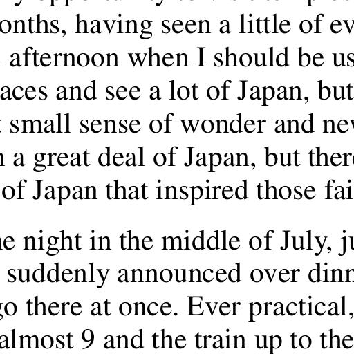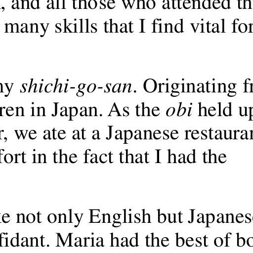 “Reflections on Japan”Hein Aung (Columbia University)“... it was as if he were watching a tableau in a dream — and that was no doubt the working of his strange mirror,” Kawabata Yasunari opens his most famous novel, Snow Country, with his protagonist peeping at a girl nursing — what he assumes to be — her sickly husband. Through his train car window, the protagonist, Shimamura, stares at the girl’s reflection. Despite the perverseness of a description of a man staring at a girl intently, for hours, Shimamura’s musings are not perverted. Offhand, one could take his actions as voyeuristic, but the pleasure he feels is not sexual, but, rather, sublime. The “unexplainable beauty” of the girl’s face superimposed onto the moving mountainous landscape compels his chest to rise. The narrator describes the mirror having “unreal, otherworldly power”. Shimamura seems to rejoice more in the unreal than the real. Hence, he is an expert in the art of Occidental dance, without ever having seen a single performance. Out of a dissatisfaction in the “old tradition,” Shimamura scours pictures, programs, and posters of the art. Oddly enough, Shimamura’s world vaguely resembles my perception of Japan — mirrored, yet inexplicably taking.