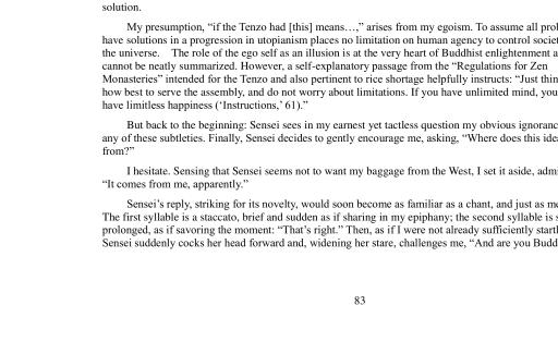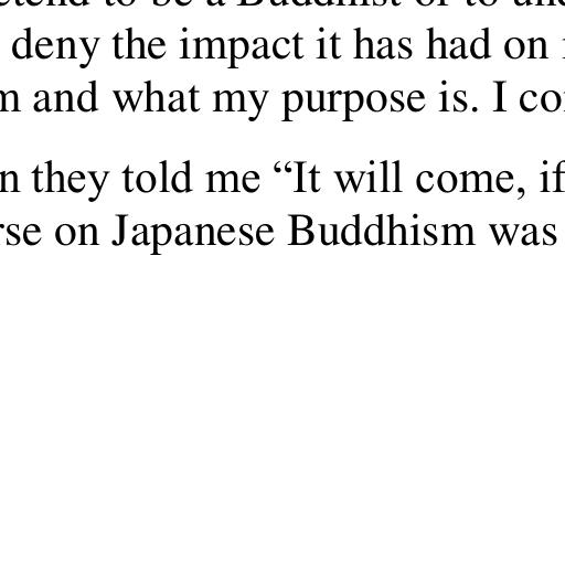 Japanese Buddhism may be both Japanese and Buddhist but Sensei’s implicit argument for the importance of this class was framed as two challenges rolled into one question, every single time and for every single person to whom she posed it. “And are you Buddha?” meant both “Are you Buddha now?” and “Are you Buddha yet?”