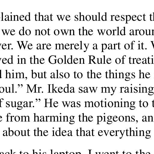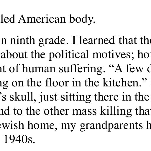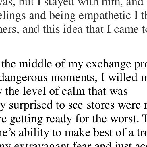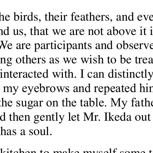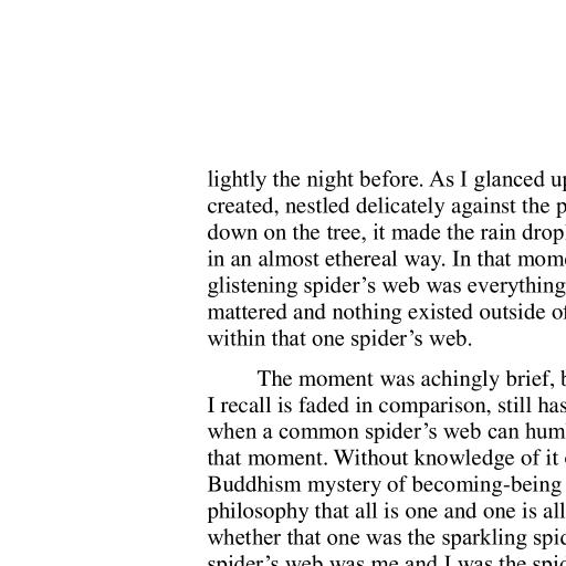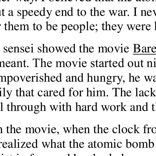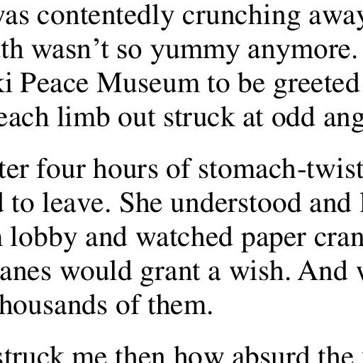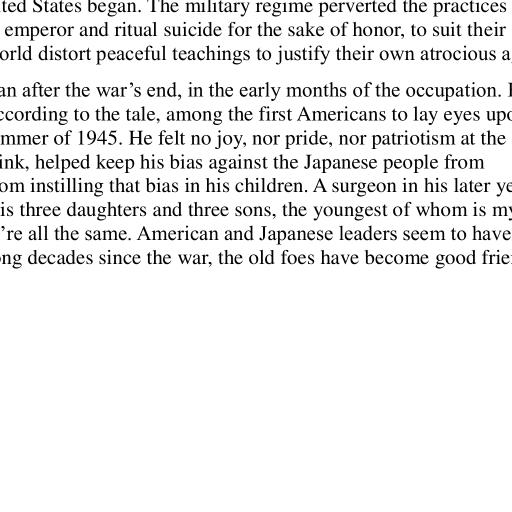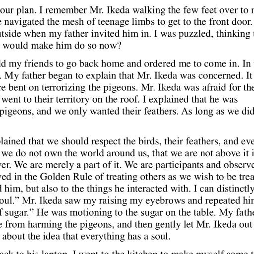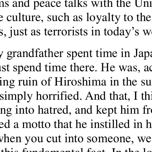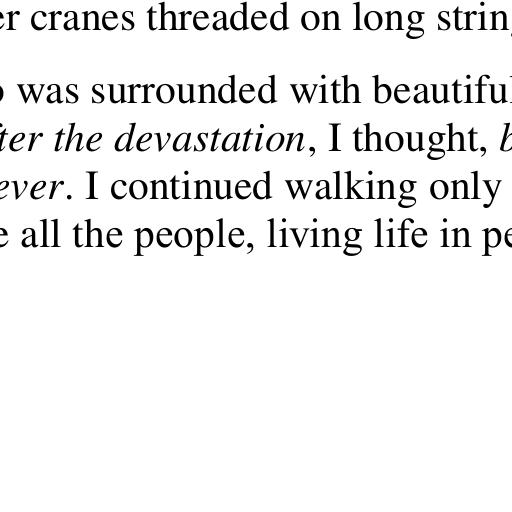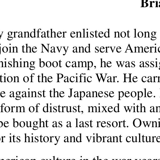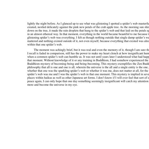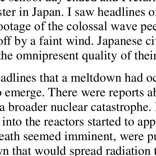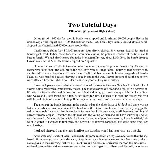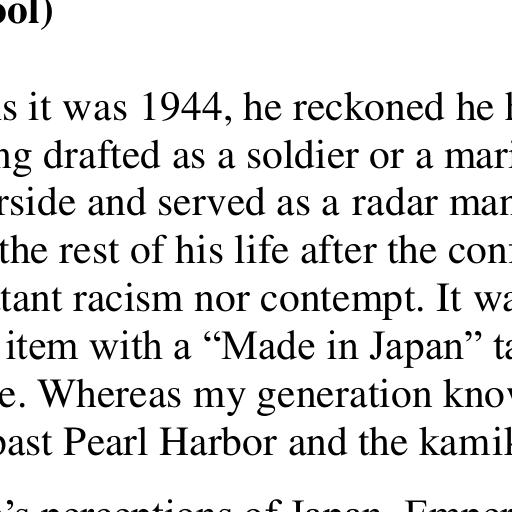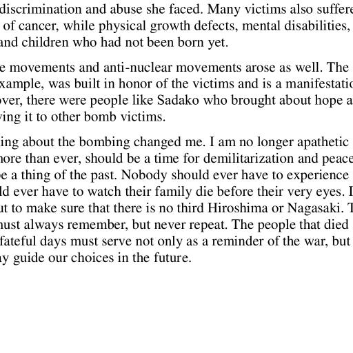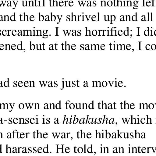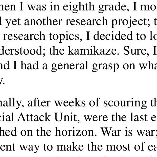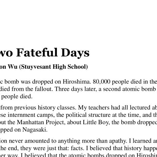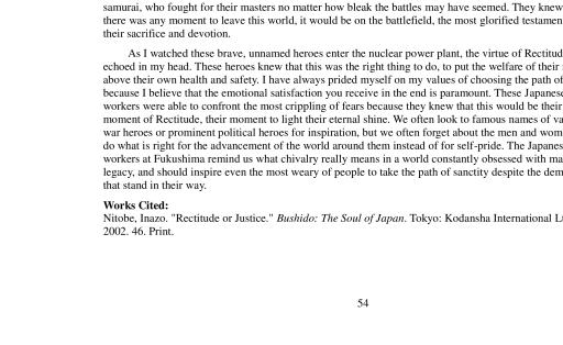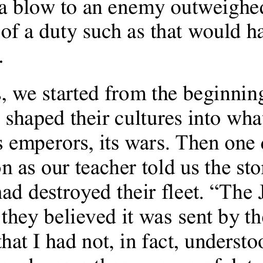 It was this story that came to me near the end of the semester when Sensei leaned forward, more animated than usual, and posed a question: if America were to launch a nuclear attack on Russia, destroying its entire population, should we feel responsible for the actions of our government? She asked us to raise our hands yes or no. For the first time in my life, I halfheartedly raised my hand between yes and no to give an opinion on a contentious topic. Yet I wasn’t undecided. I was curiously distant from the idea of making a decision, as though it was above my pay grade to be making decisions such as this.