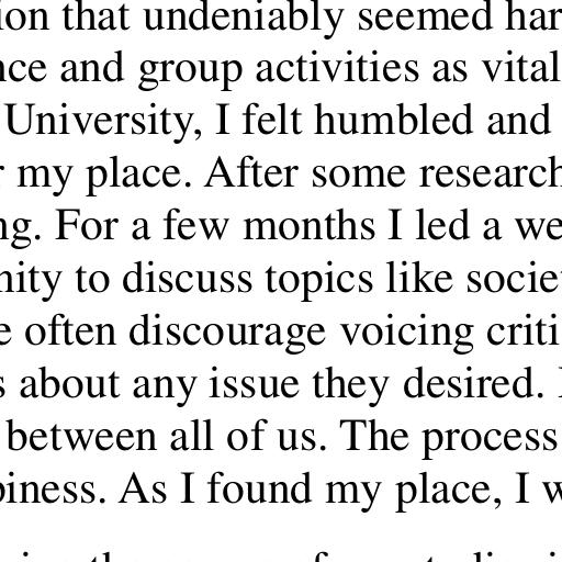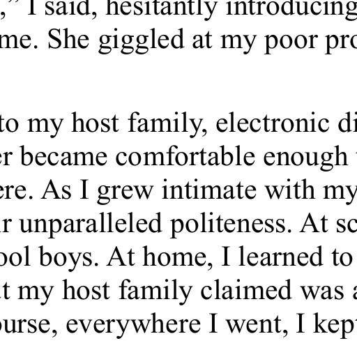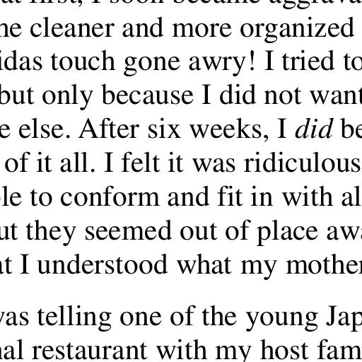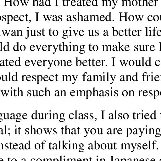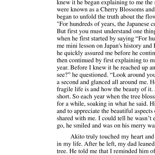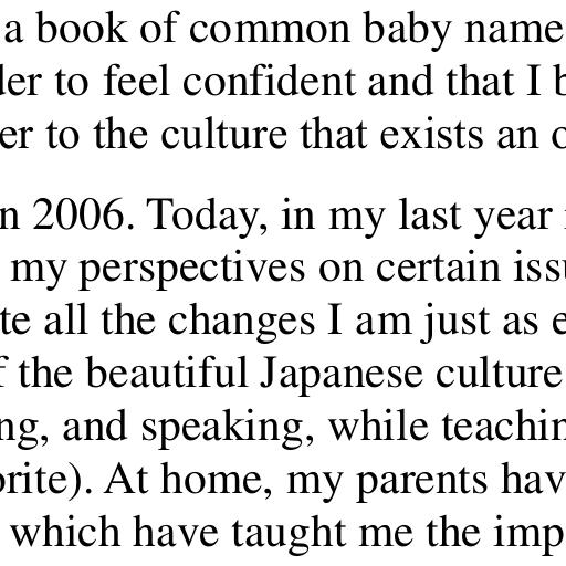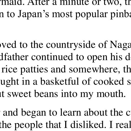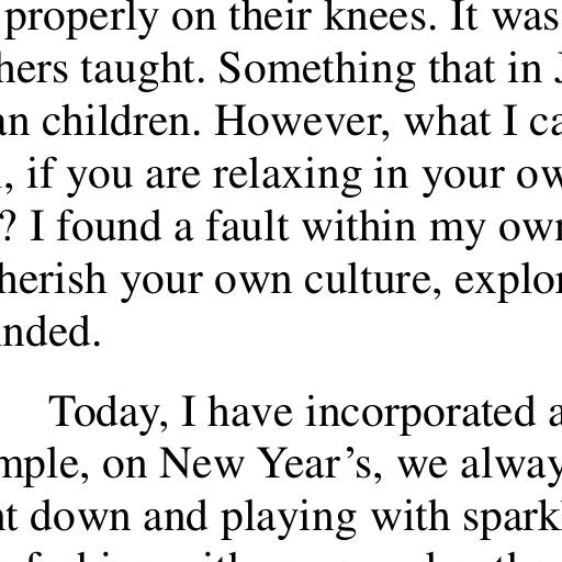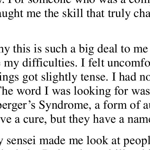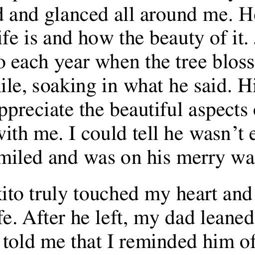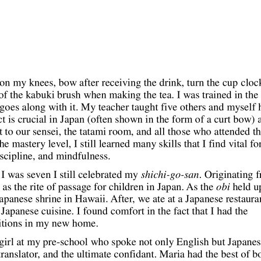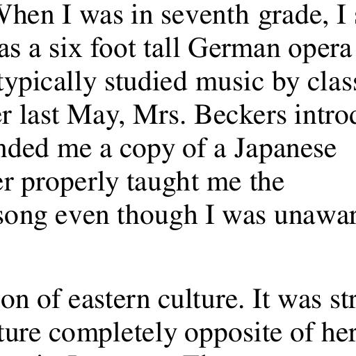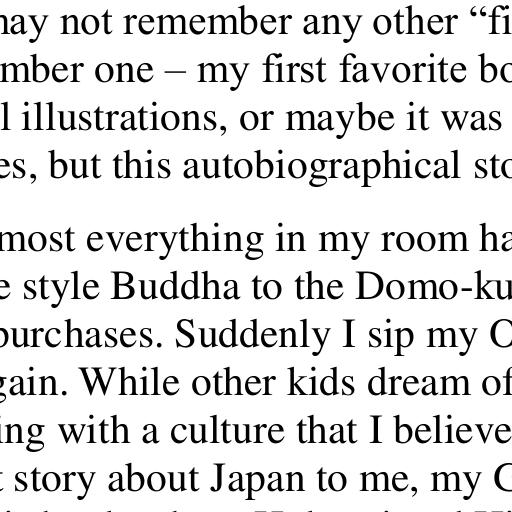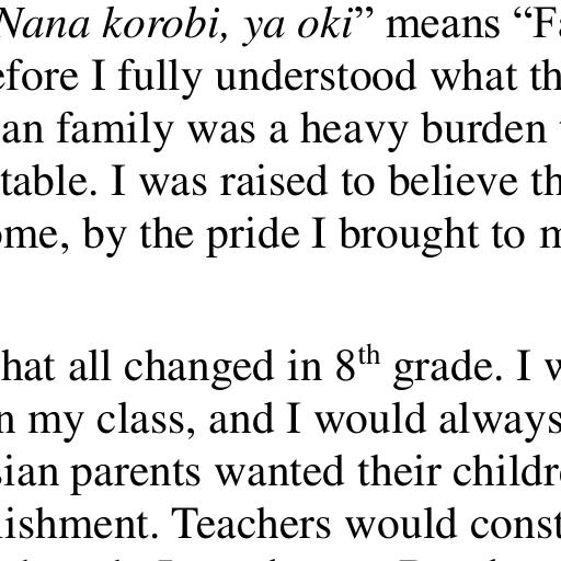 I slowly began talking to other people about my interest in Japanese animation. There were some who didn't understand my love at first, like my grandmother. And there were some who completely understood, like my brothers. Either way, just talking about it gave me the chance to open up, even if it was for just one conversation. A new me was beginning to form, like a pupa finally cracking open its shell. On my first day of middle school, I introduced myself to my peers, not with silence or just a quick statement of my name. “My name is Tia, and I like anime,” I said simply, praying there would be others who would understand and react. Thankfully, there were. I became a part of a group that could relate to each other, even with all of our differences. I began to talk about more than just my love for animation, finally breaking down the barrier that surrounded me.