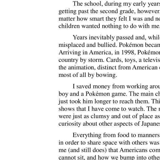 The characters in each show were amazing; I felt a connection to them. In fact, I could say my connection to these non-existent characters was stronger than most of my real-life relationships at the time. One such character was Haruhi Fujioka, from Ouran High School Host Club. Not only did she lose a parent at a young age, but she was down-to-earth and analytical like me, yet very vulnerable at times. Characters in American cartoons were not as well-developed; the show seemed more focused on keeping the watcher’s attention or getting a lesson across than building on their characters.