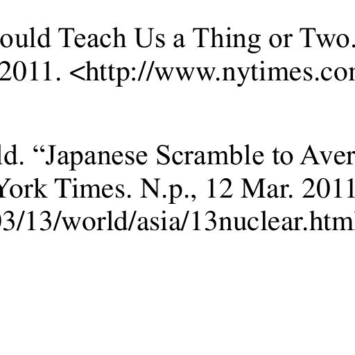 Kuhn, Anthony. "The Secret to Japan's Little League Success: 10-Hour Practices." NPR. NPR, 28 Aug. 2015. Web. 08 Jan. 2017.